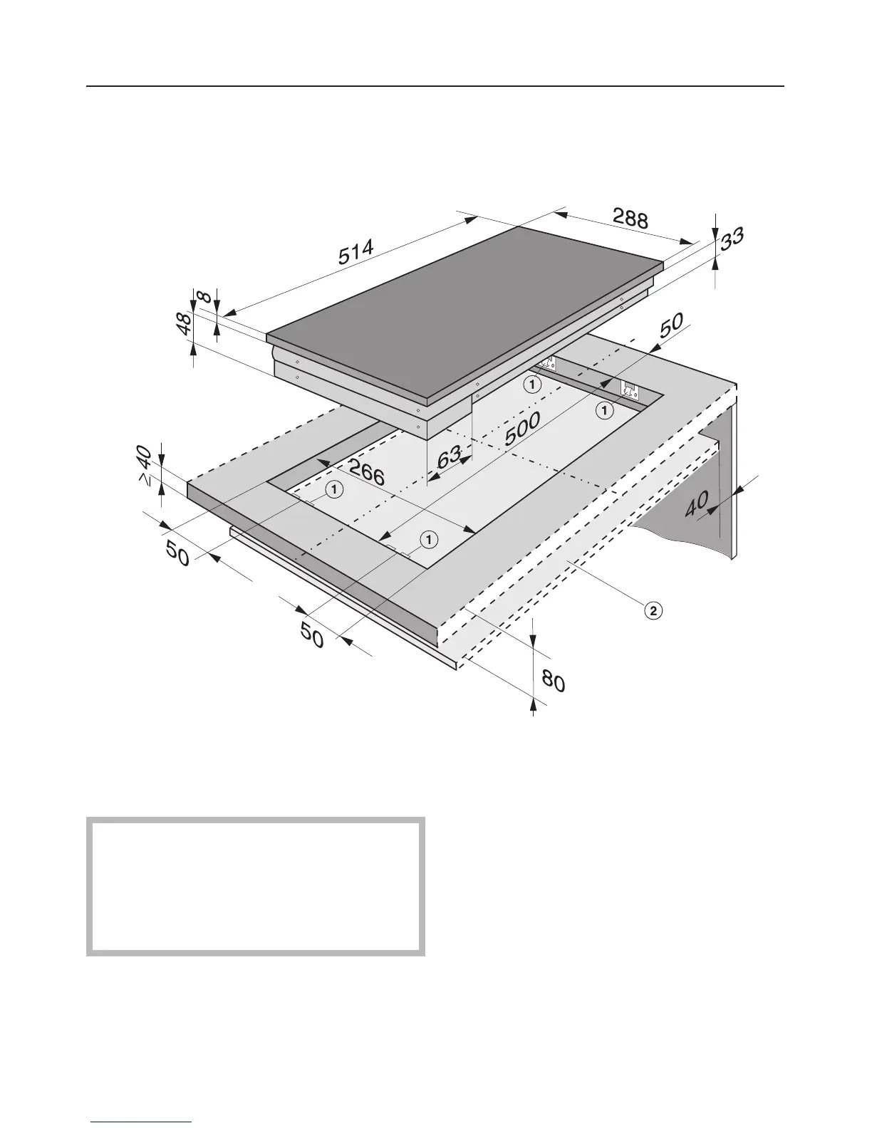 A gap of 40 mm must be maintained