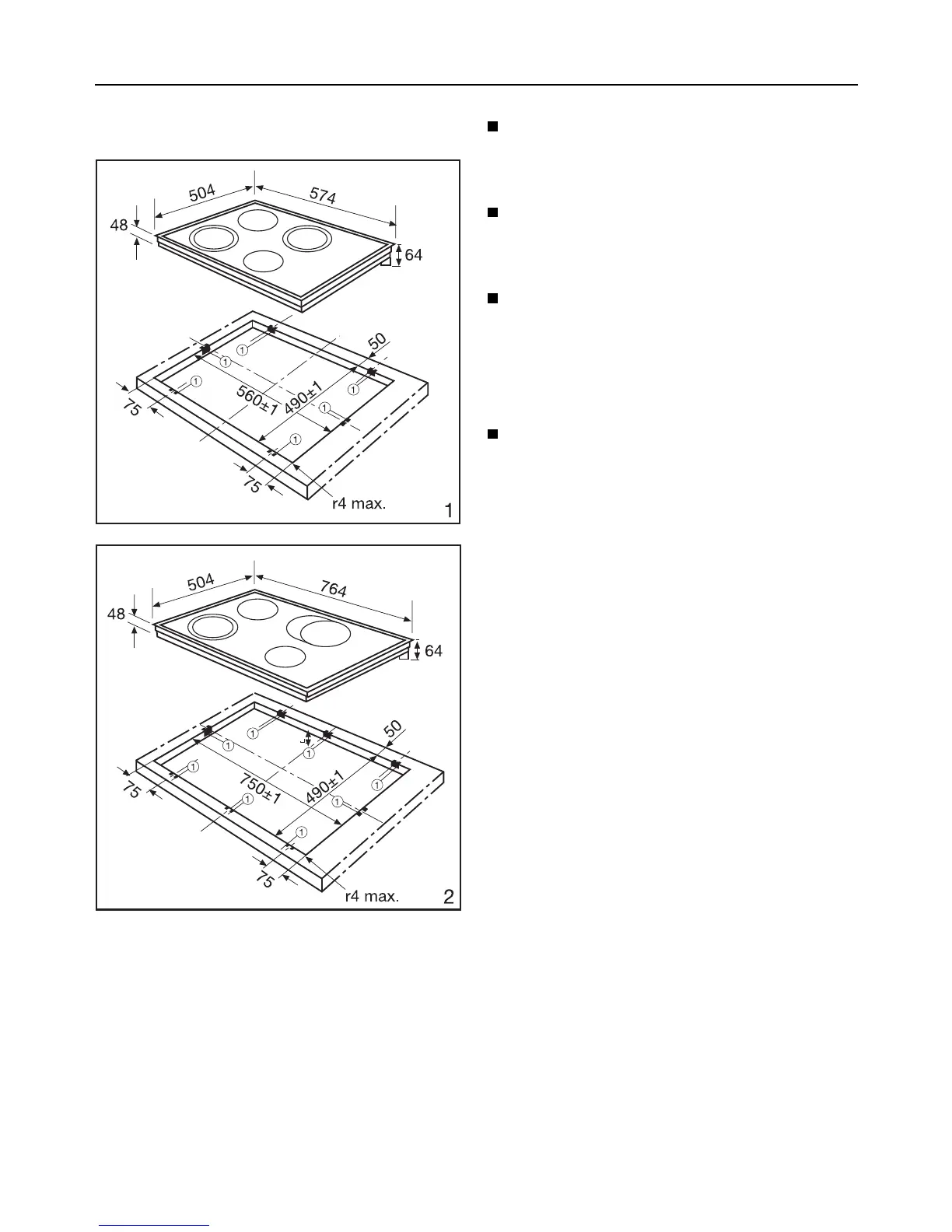 wall and the hob and 40 mm be-