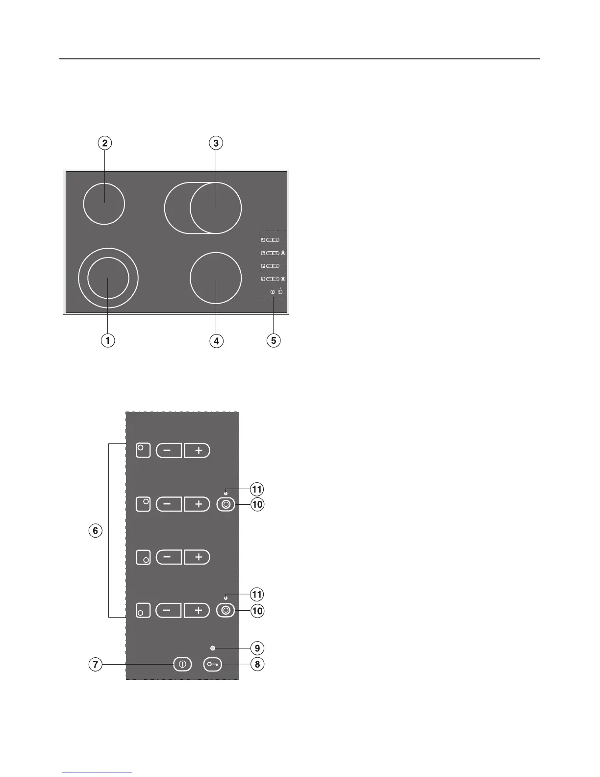 f Cooking zone controls and displays