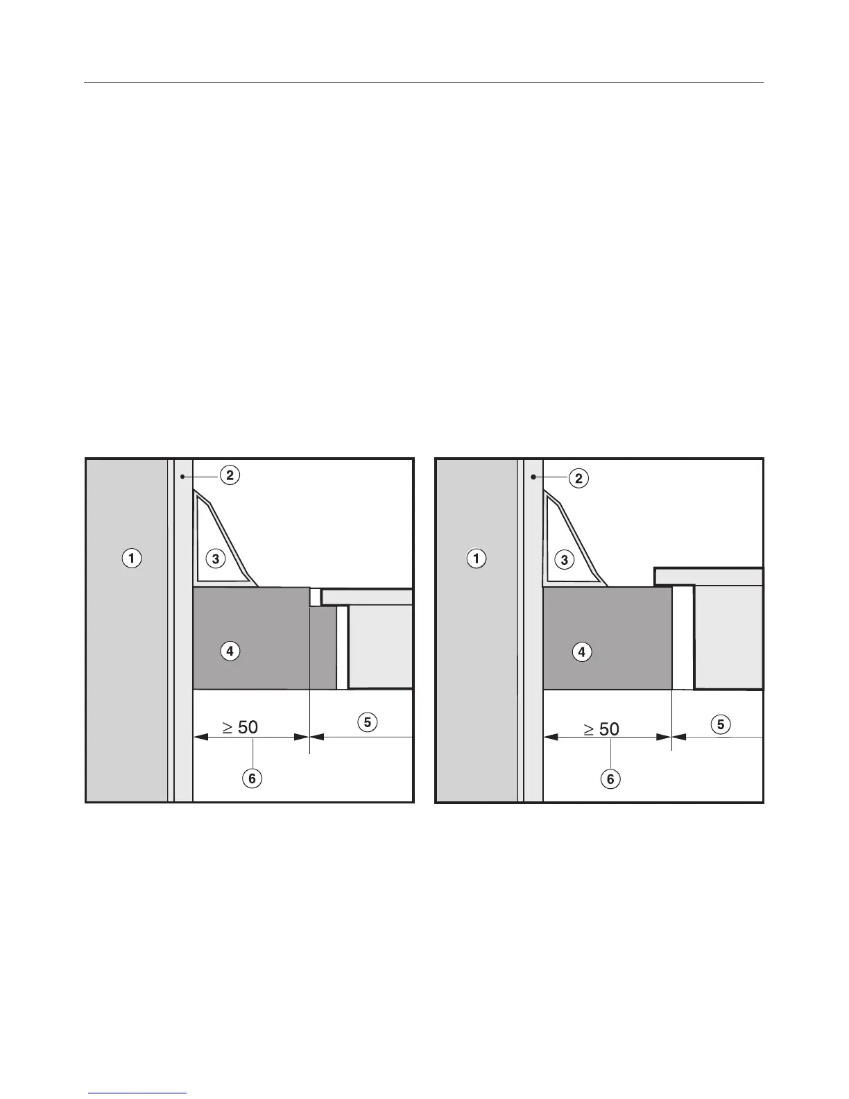 minimum safety distance e of 50 mm must be maintained between the cut-out
