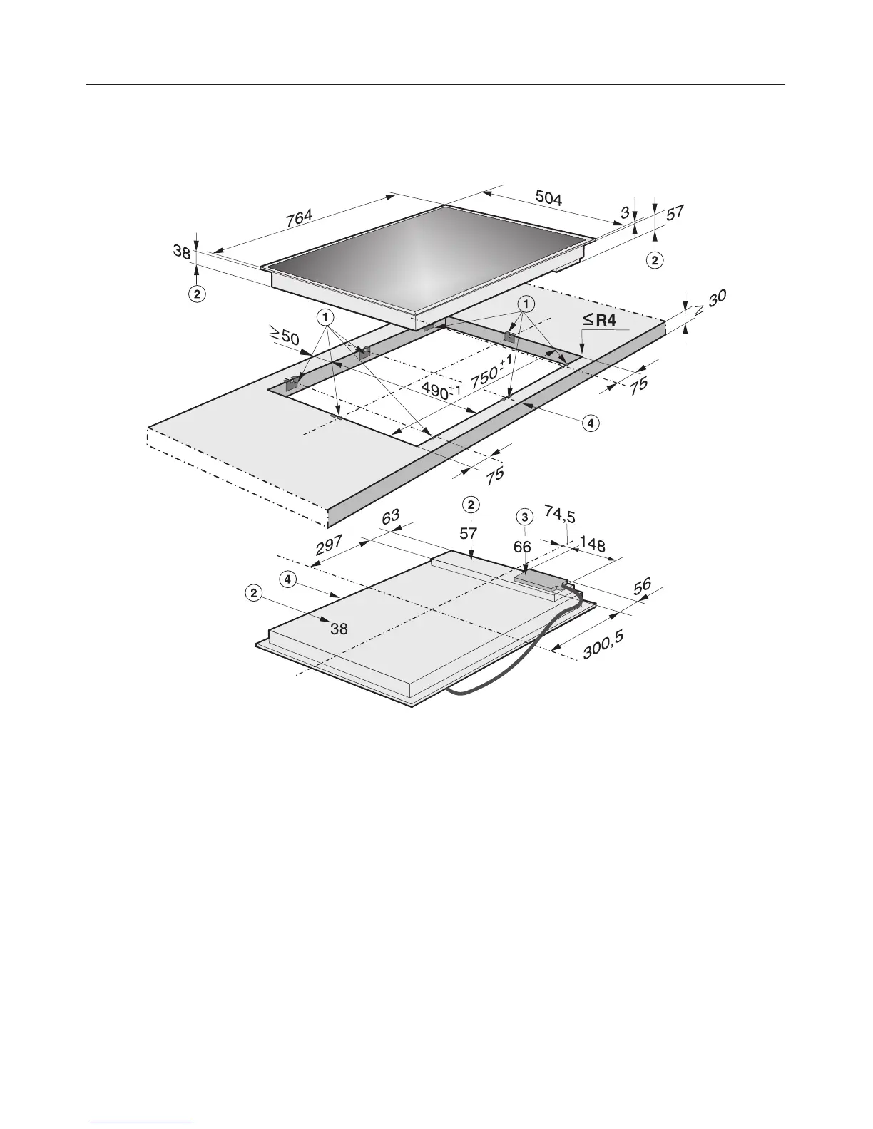 c Building-in depth for mains connection box