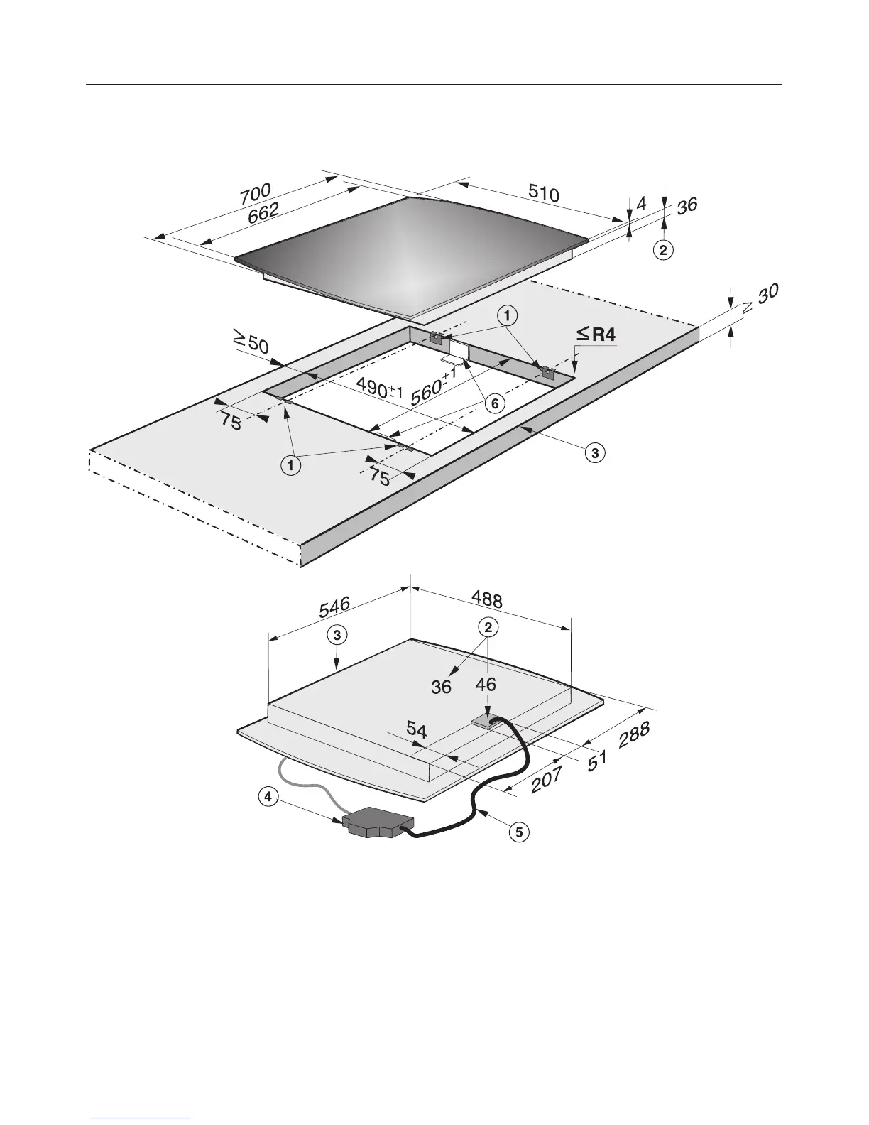 (Hob with bevelled edge)