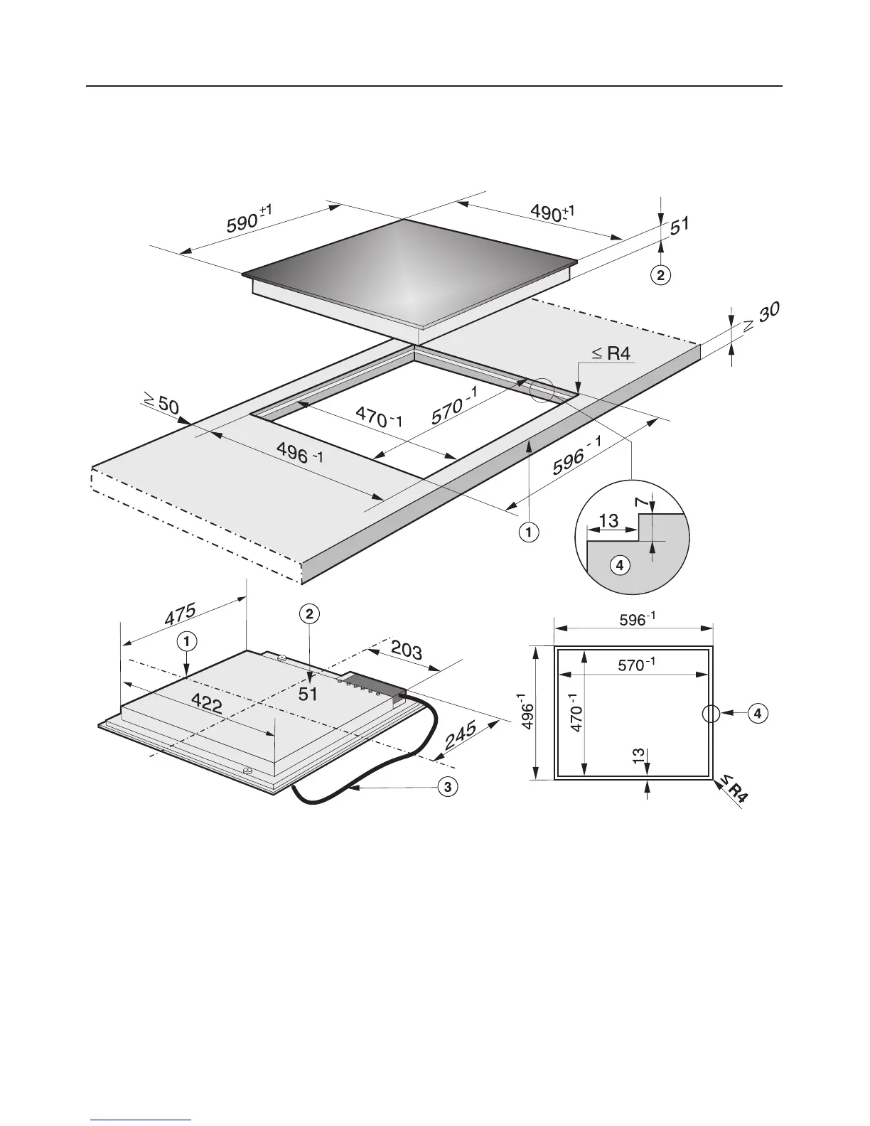 Cut-out dimensions for granite or