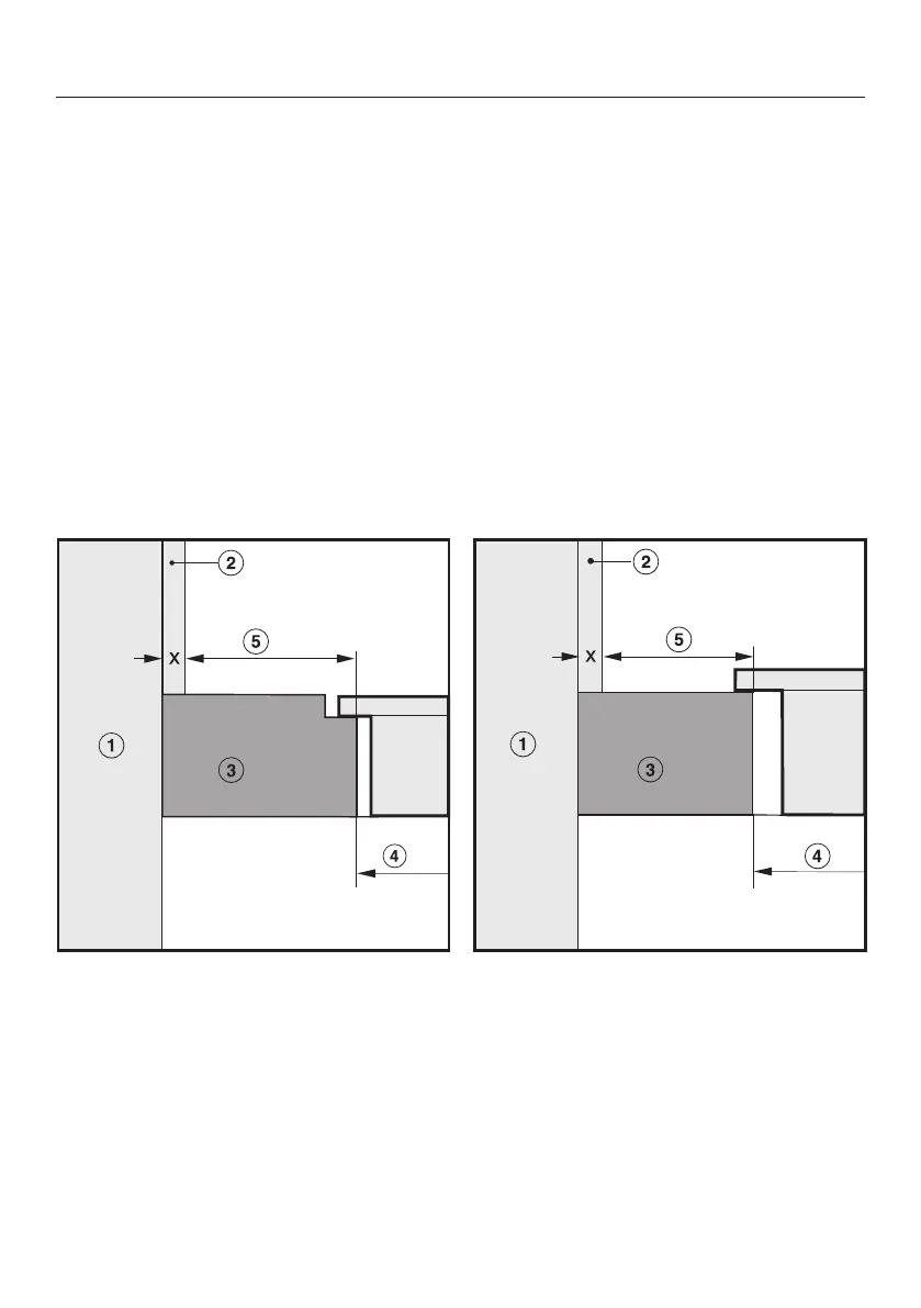 distance between the countertop cut-out and the wall covering must be 50mm.
