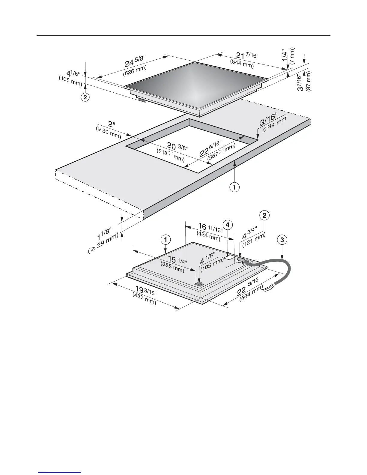 Flexible metal hose with power cord, L = 3' 11¹/₄" (1200 mm)