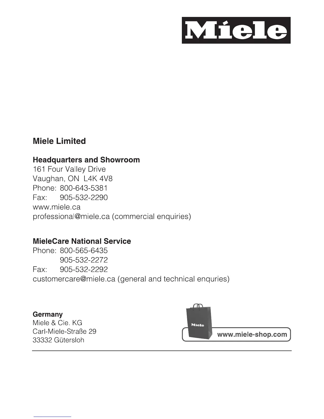 For the most updated manual, visit the Miele web site.