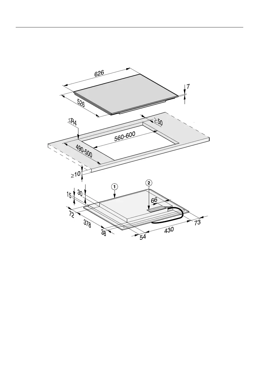 Miele KM 7464 FL - Building-in Dimensions for Surface-mounted Installation
