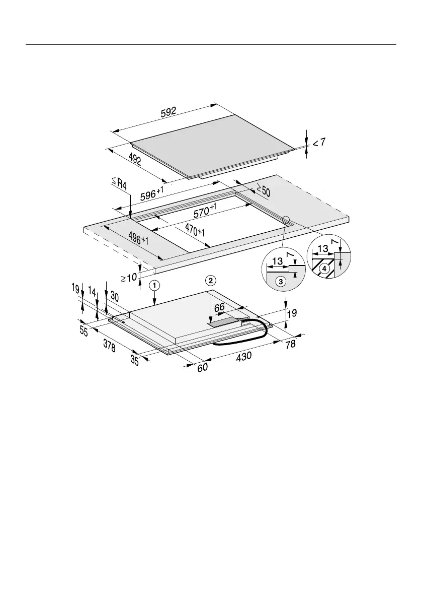 Miele KM 7464 FL - Installation Dimensions for Flush-Fit Installation