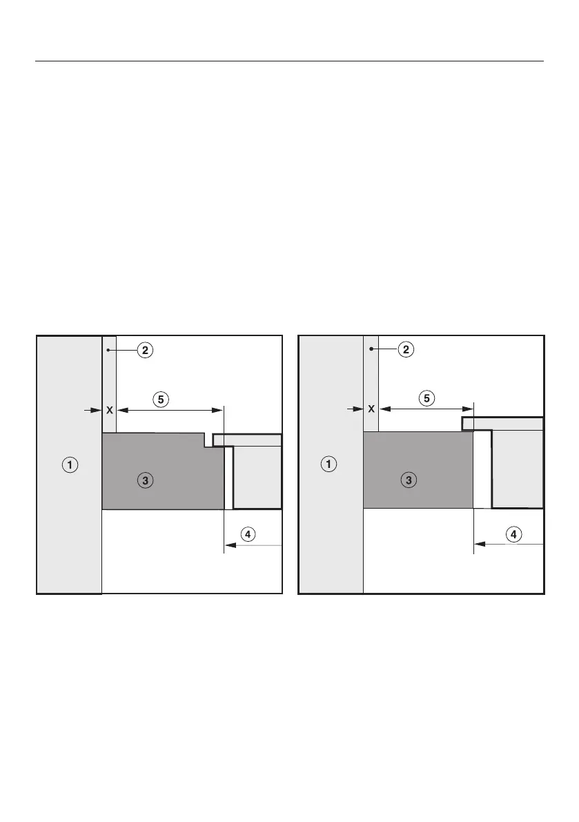 Safety distance when installing the appliance near a wall with additional