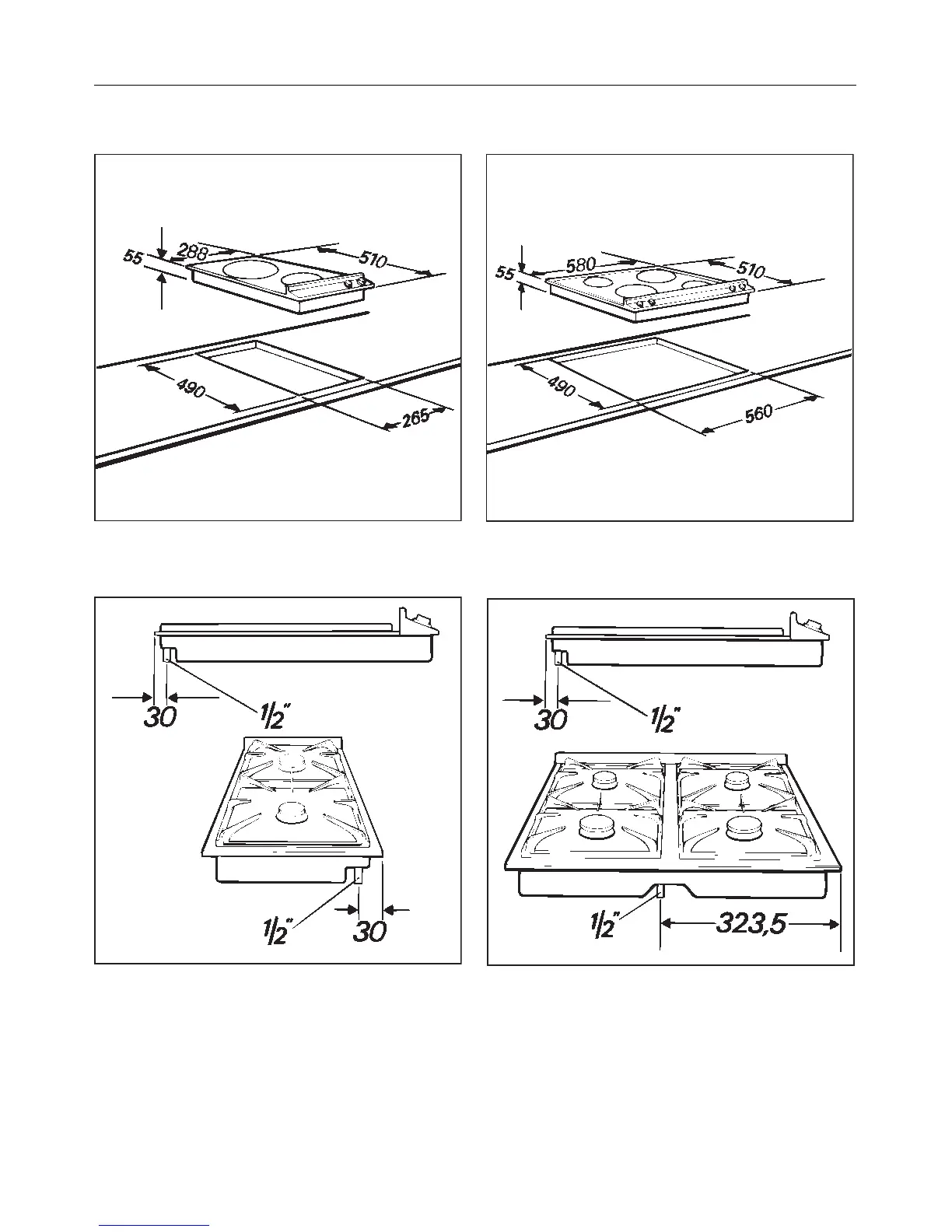 Miele KM 83-2 - Appliance Dimensions; KM 83-2 Dimensional Diagram; KM 93-2 Dimensional Diagram; Gas Connection Point Dimensions