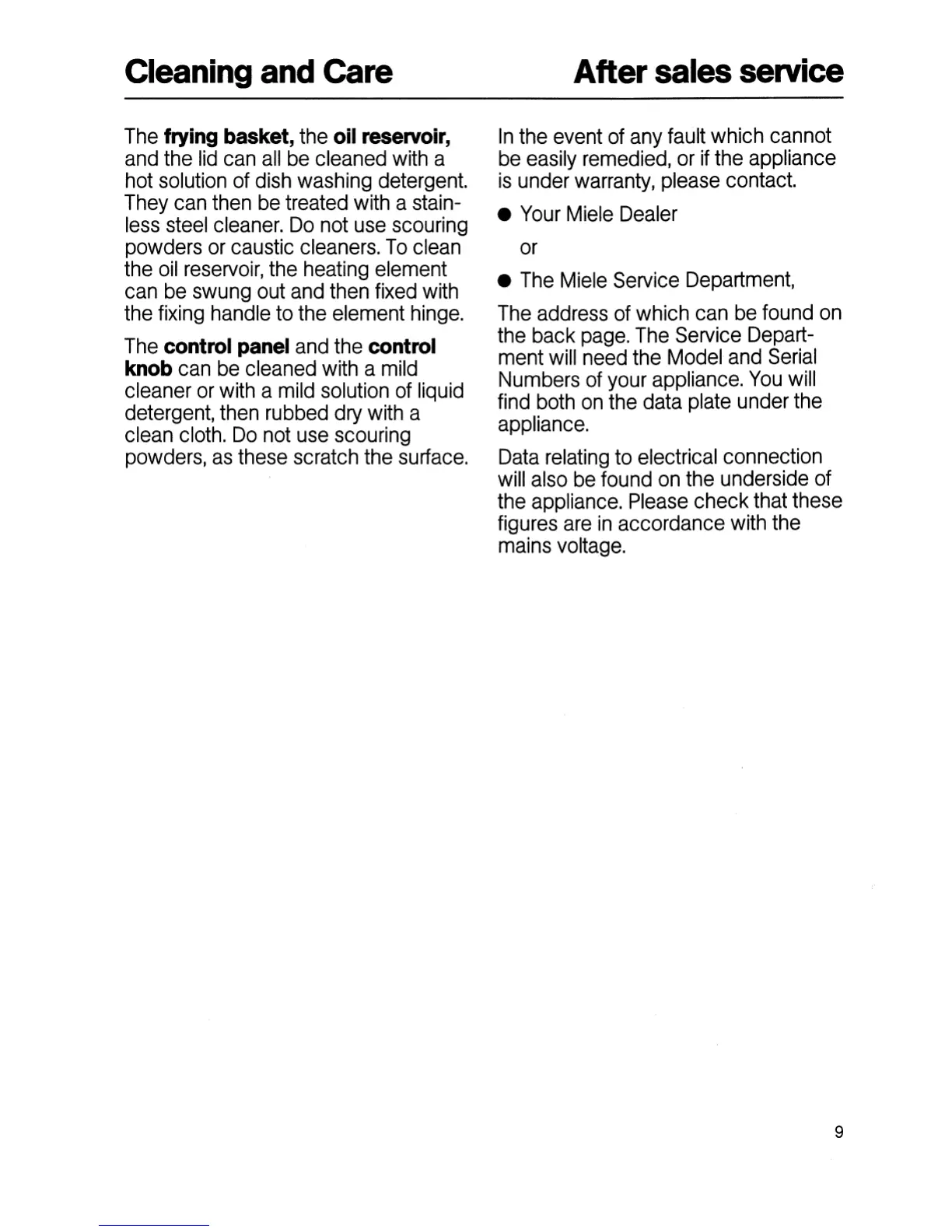 Miele KM 89 - Cleaning and Care