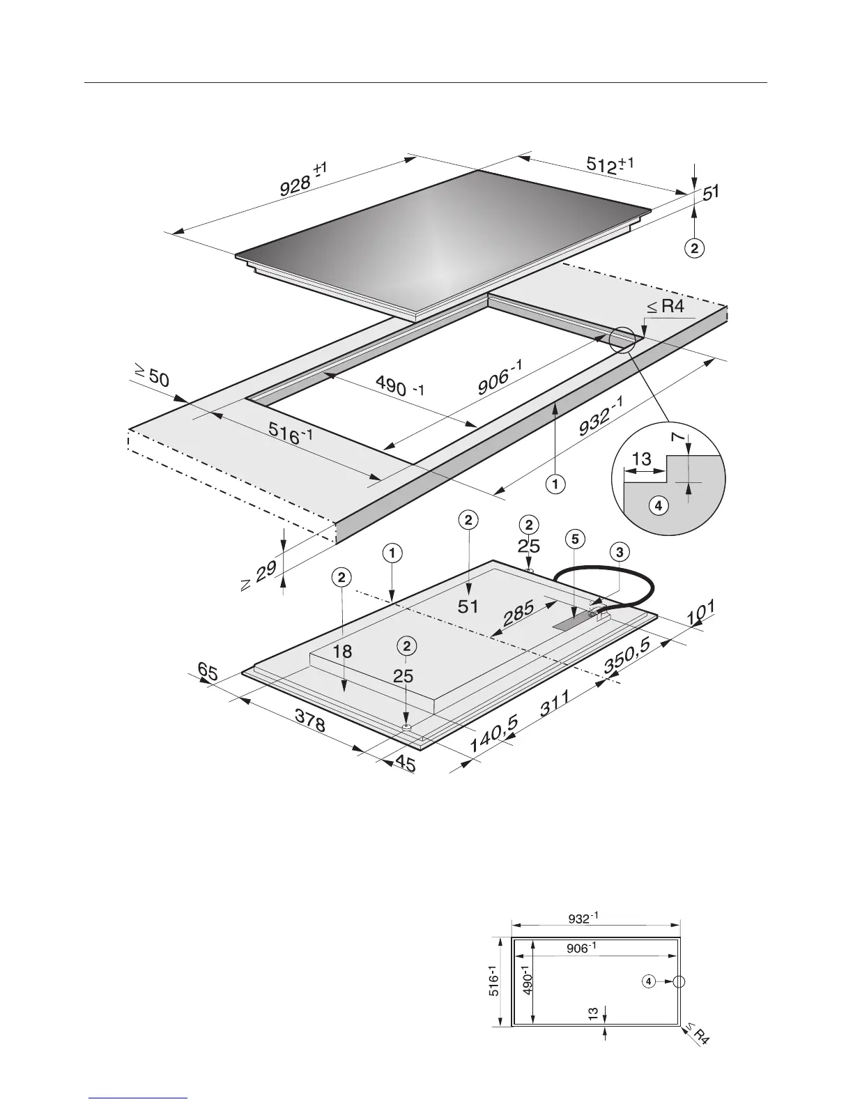 d Stepped cut-out for granite or marble
