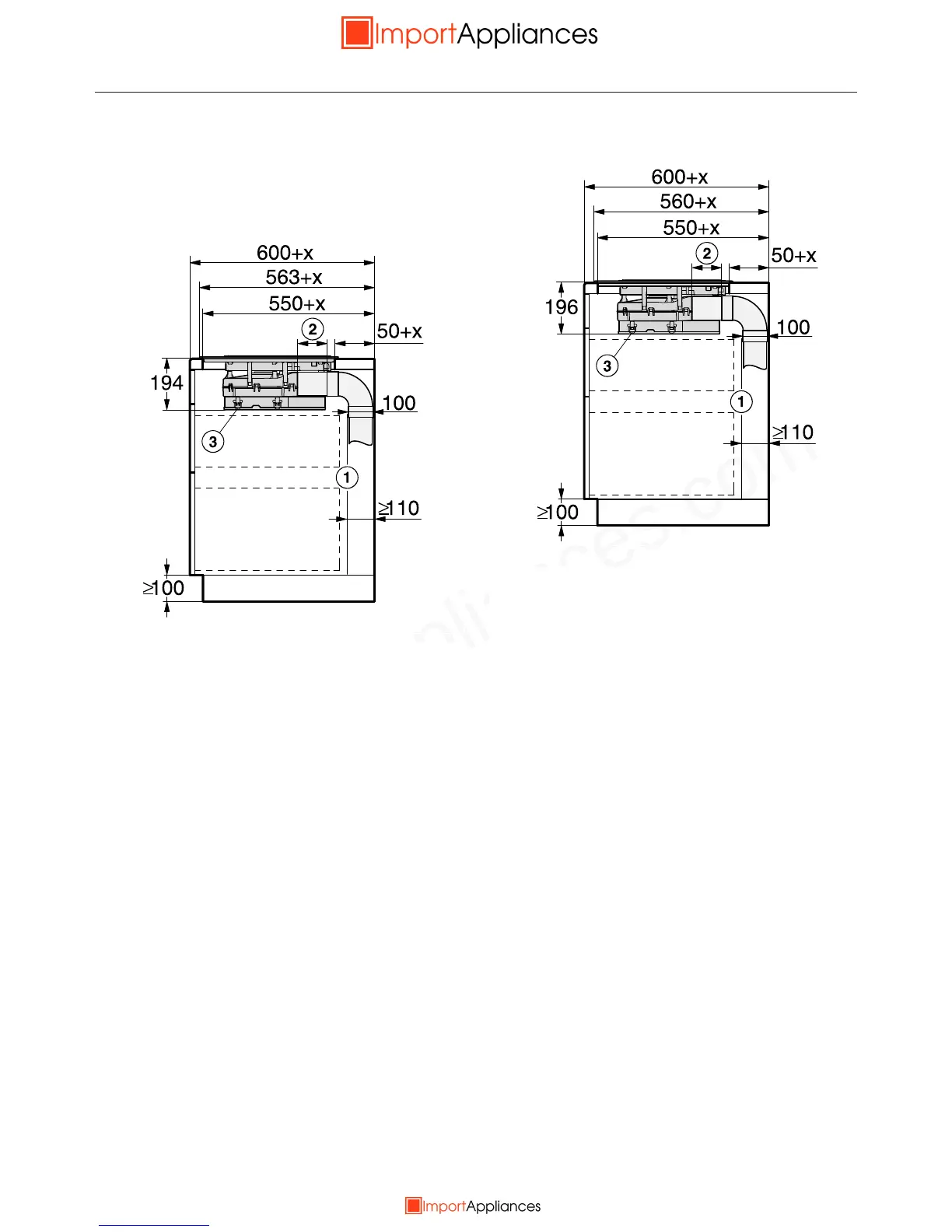 x= Dimension by which the worktop is