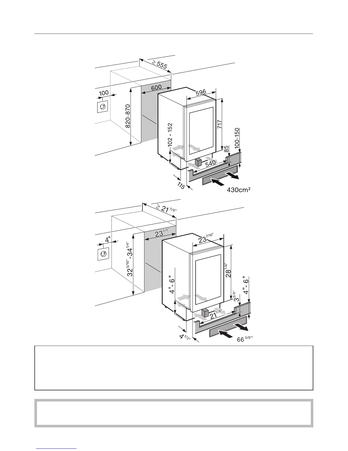 ventilation cross-sections must be adhered to and the cut-out in the plinth must
