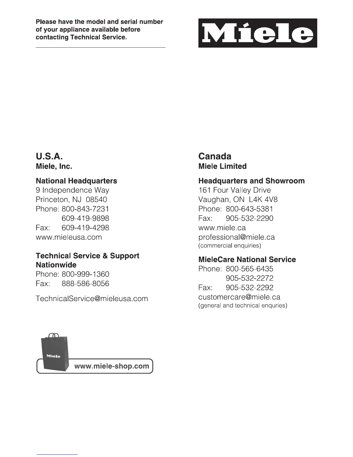 Miele KWT6322 - Contact Details