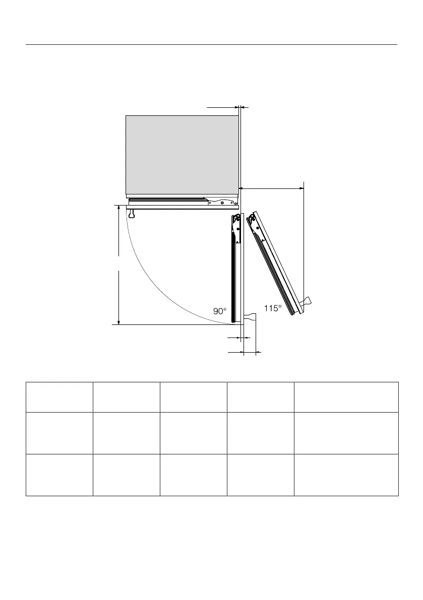 Miele MasterCool KF2902VI - Dimensions When the Appliance Door Is Open (Opening Angle 90°;115°)