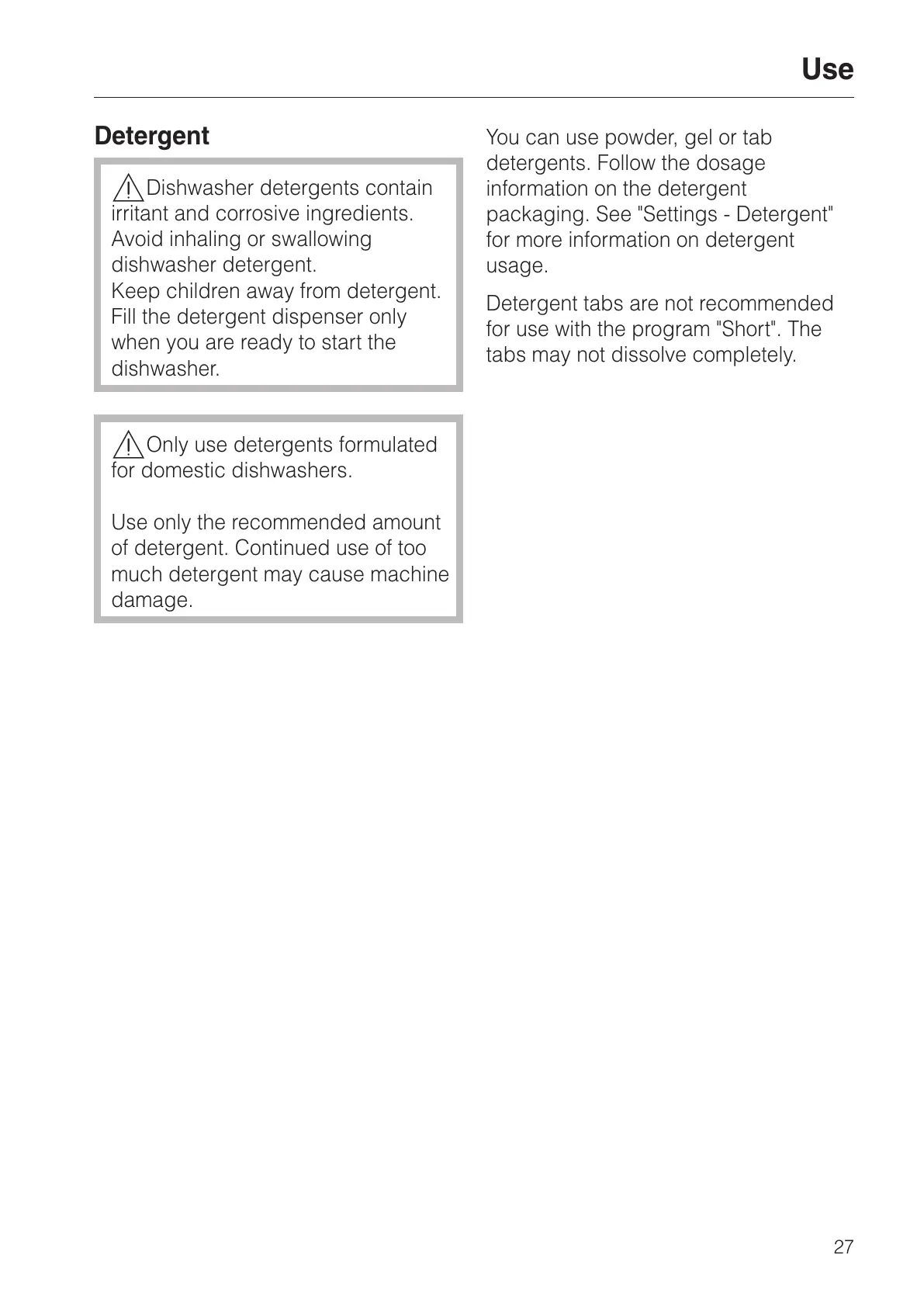 Only use detergents formulated