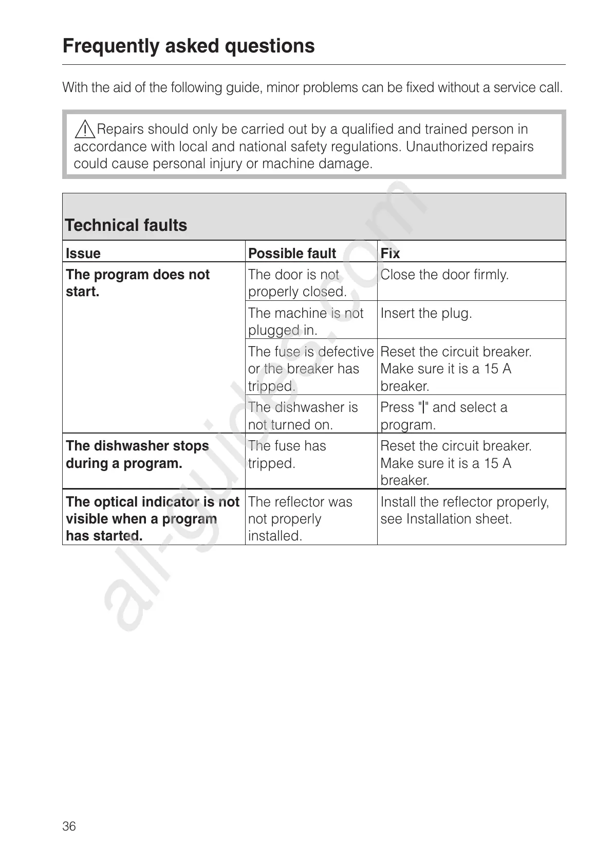 With the aid of the following guide, minor problems can be fixed without a service call.