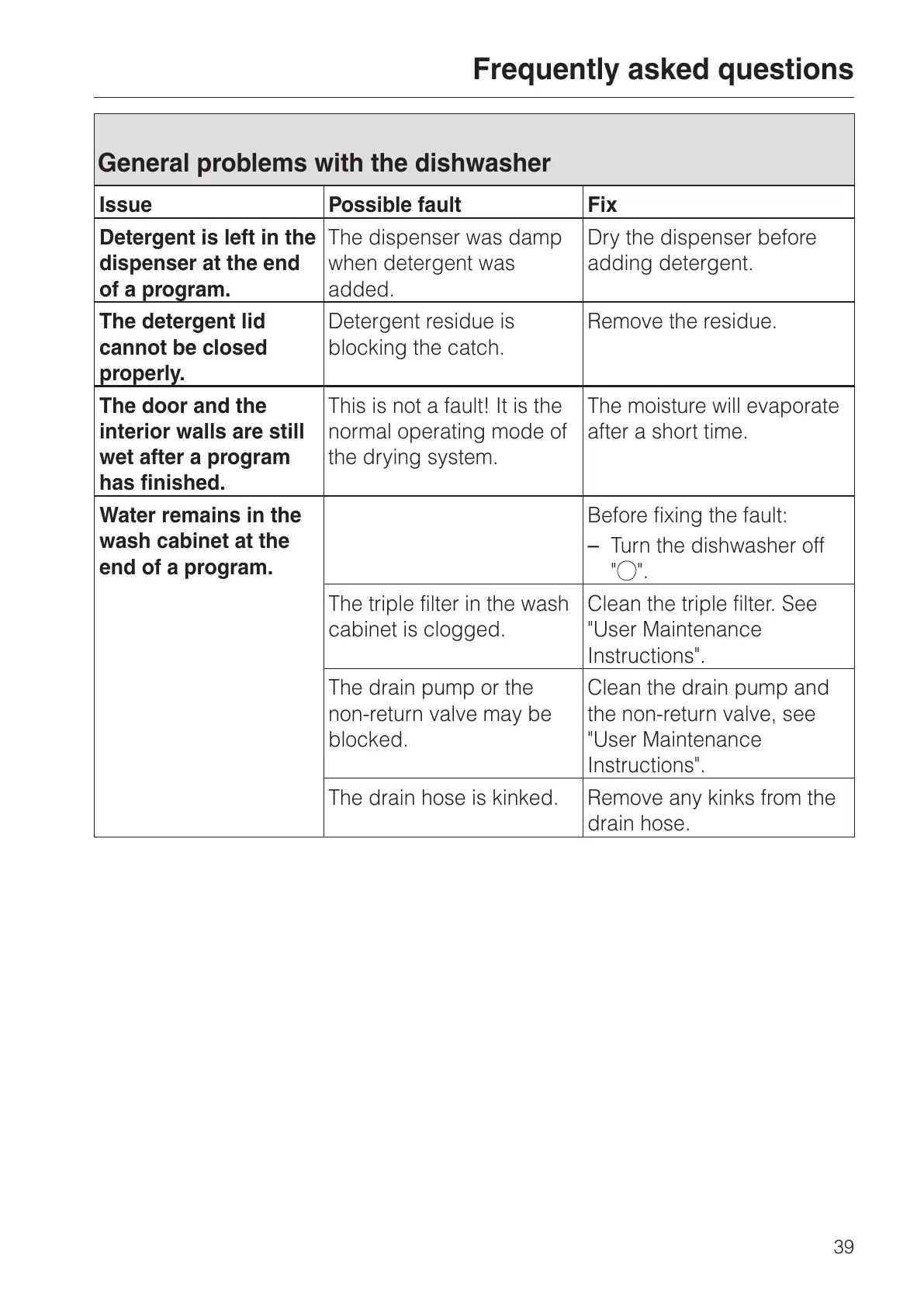 General problems with the dishwasher