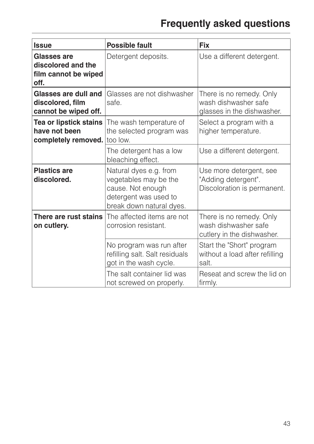 refilling salt. Salt residuals