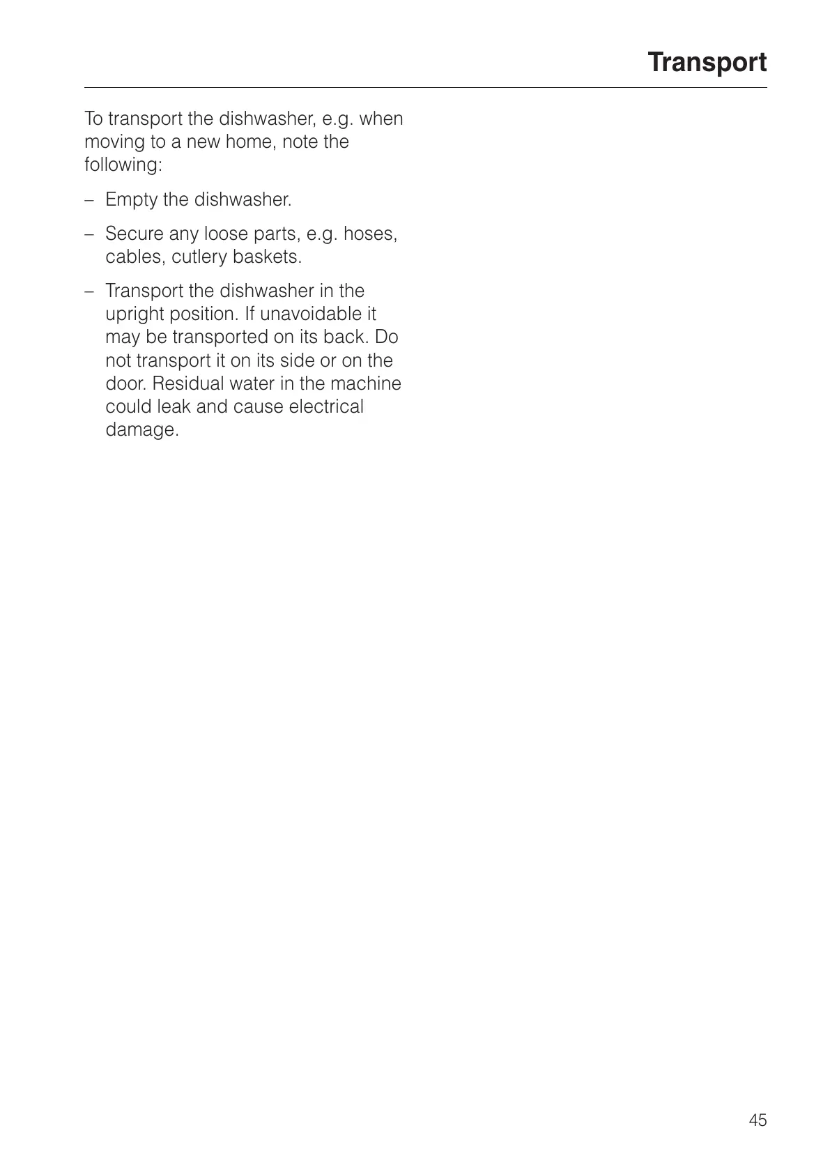 Transport the dishwasher in the
