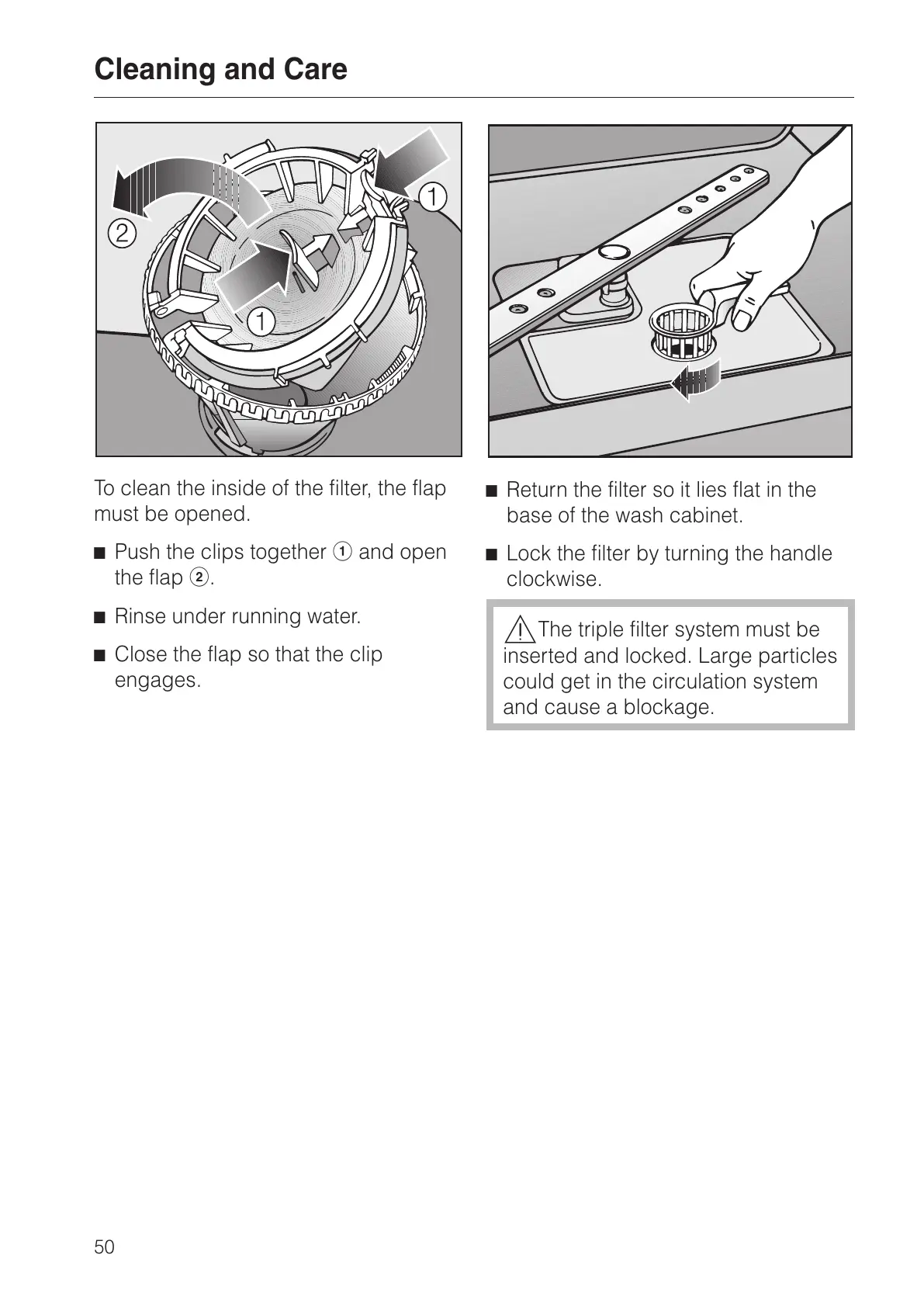 ^ Lock the filter by turning the handle