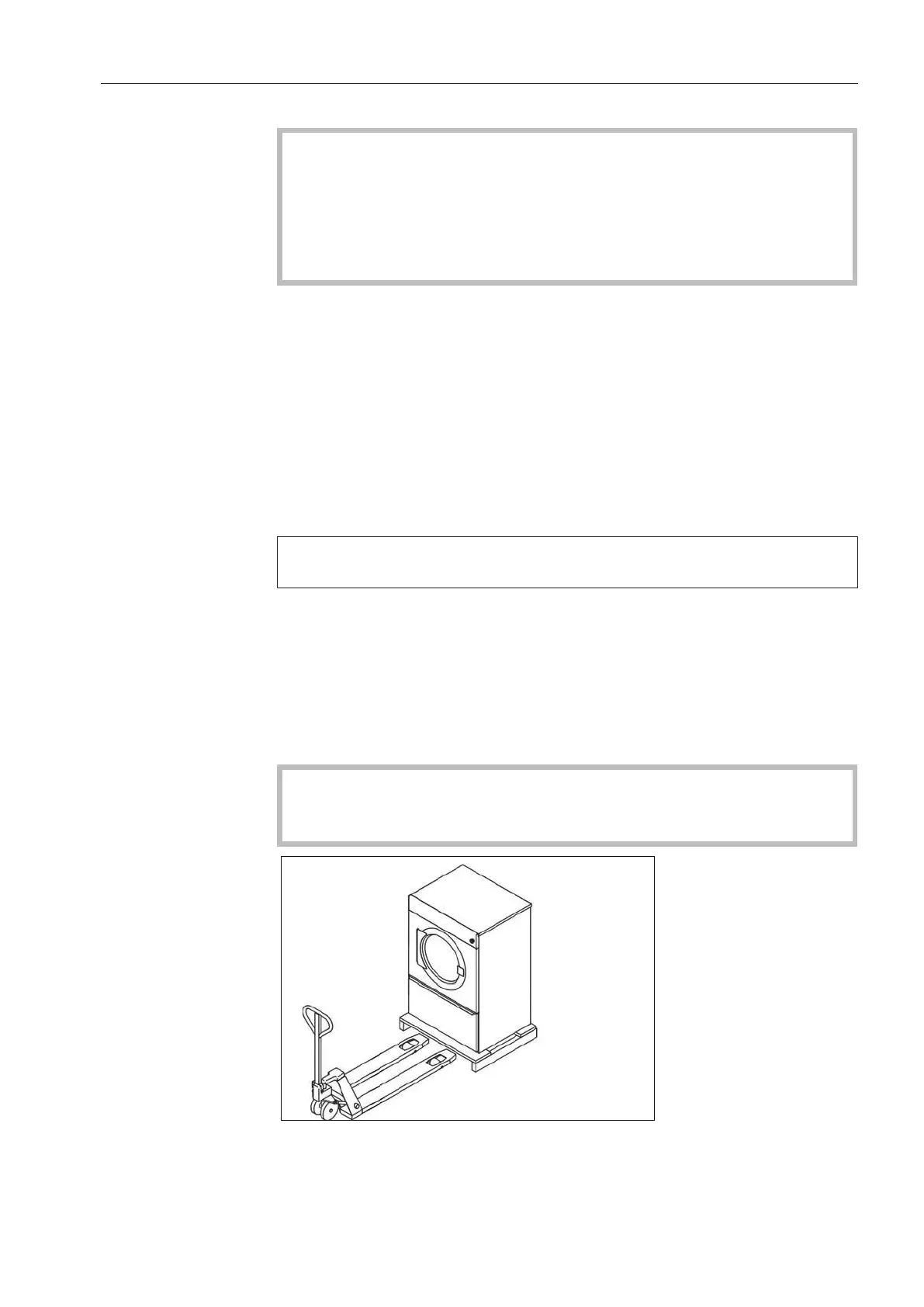 At the installation site, the tumble dryer must be lifted from the trans-
