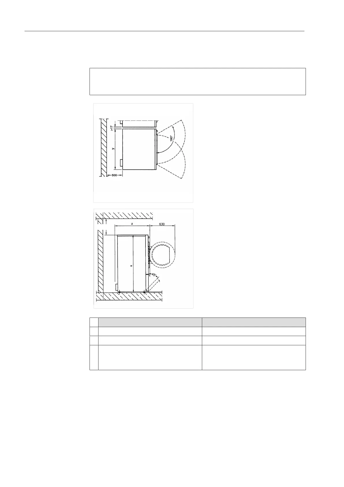 with a width of at least 19 11/16" (500mm) must be set up behind
