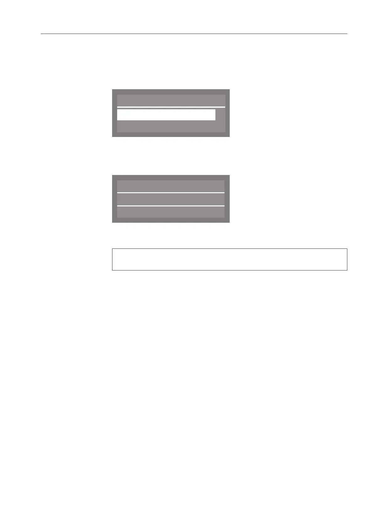 The following selection menu appears in the display: