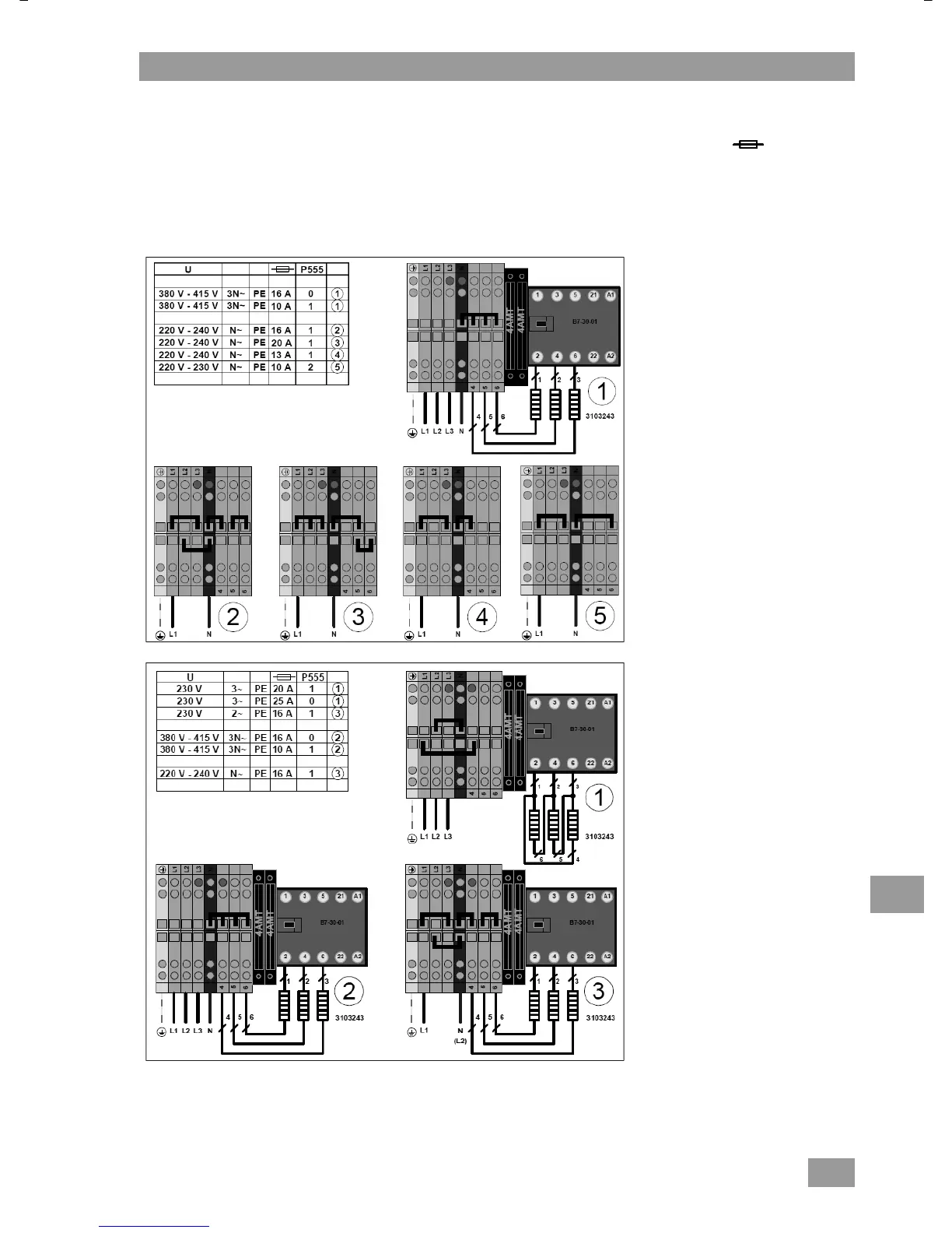 Zoek in de tabel de rij met de juiste spanning (kolom U) en de juiste afzekering (kolom ).