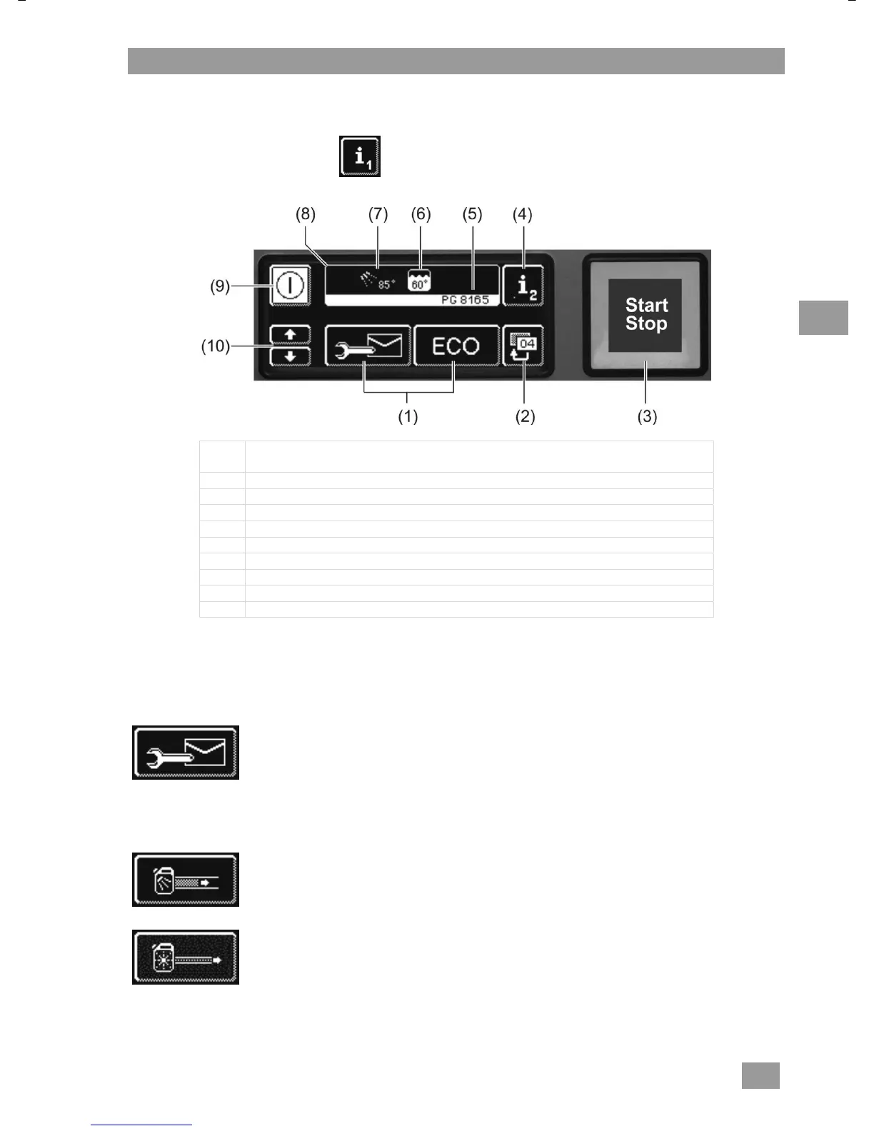 press the "Info level 1" button. Symbol (6) displays the current tank temperature and symbol (7)