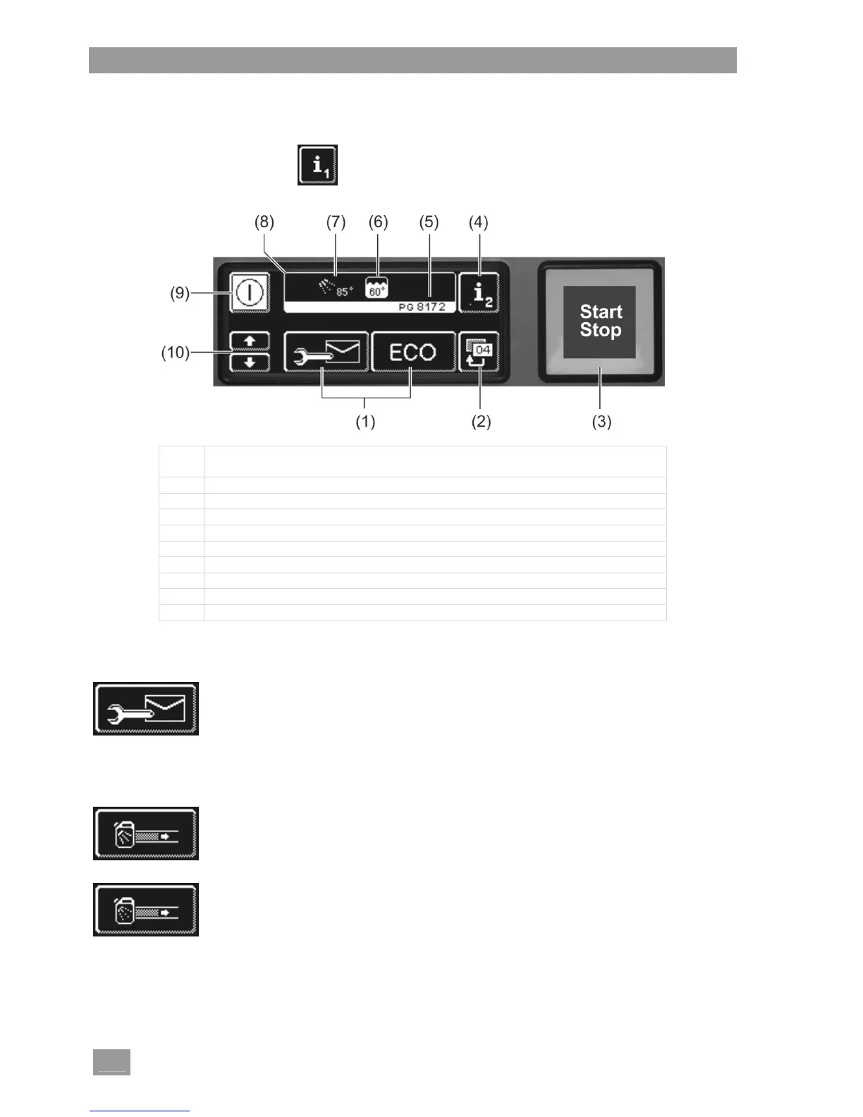 (1) Buttons for retrieving information, the priming of the dispenser pumps and