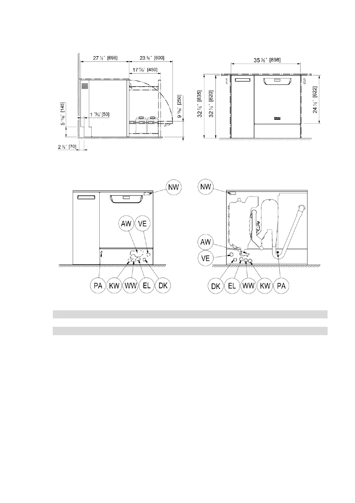 DK Cold water connection, steam condenser VE Demineralised water connection