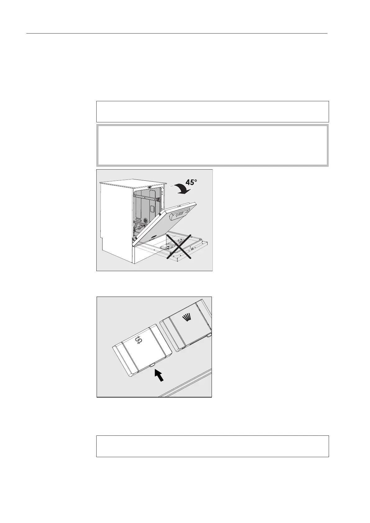 Open the door to an angle of around 45°. This ensures that the salt