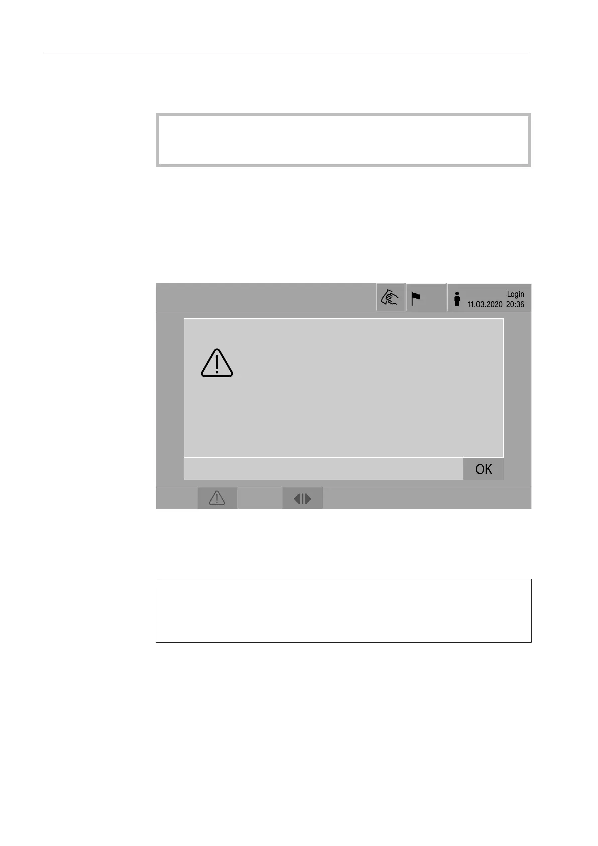 The pop-ups are closed by pressing OK; the messages remain in the