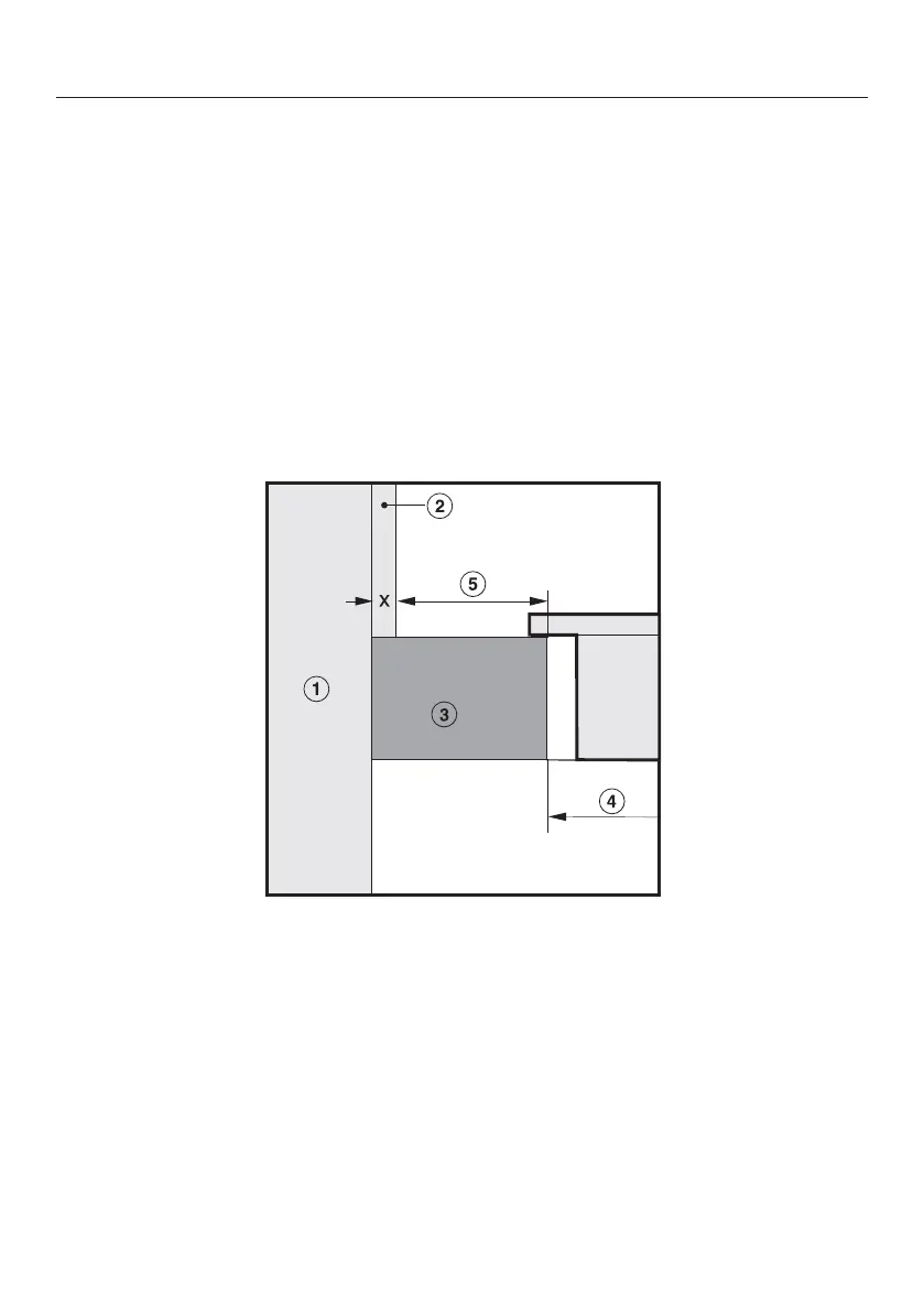Safety distance when installing the appliance near a wall with additional