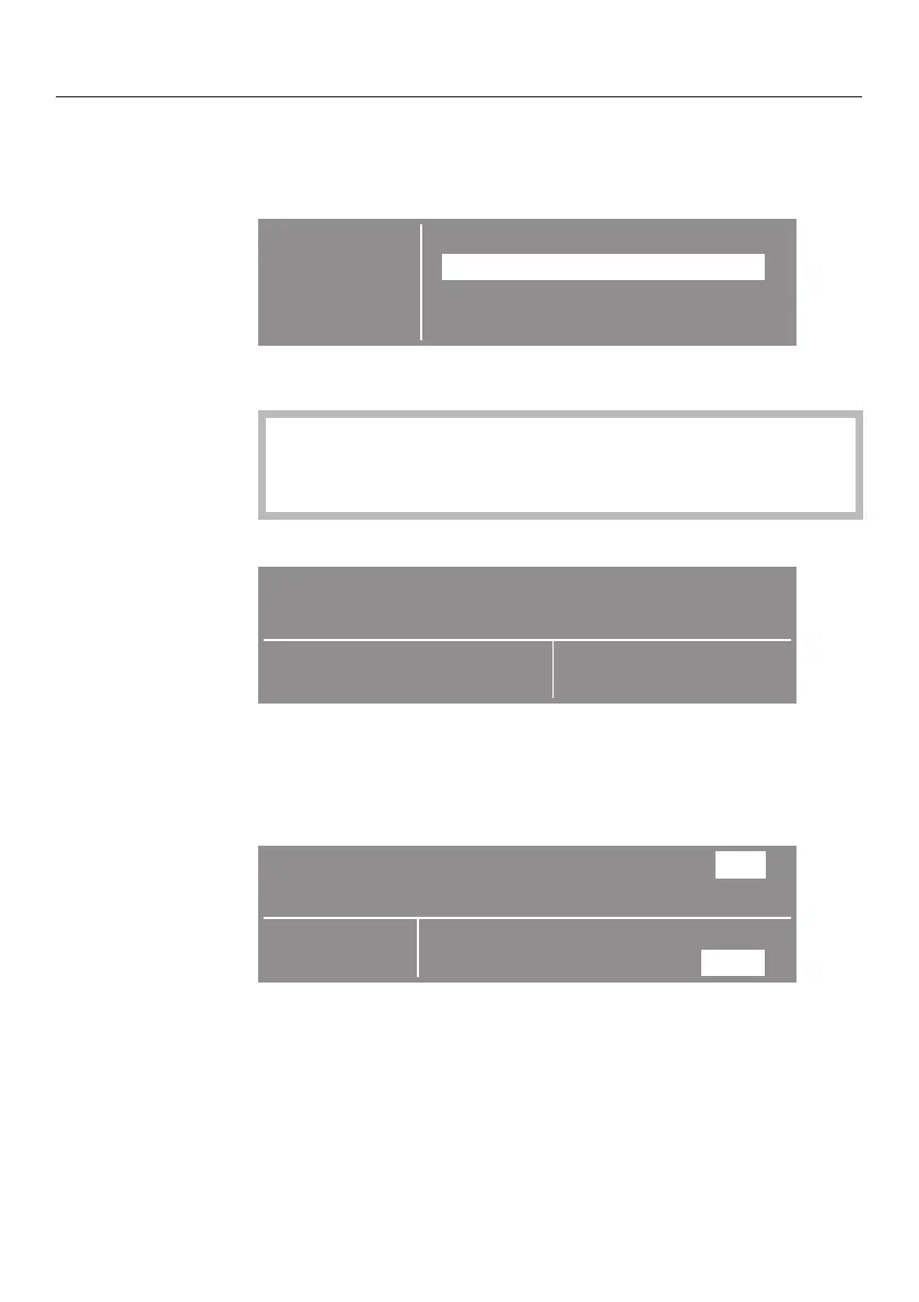 Depending on the selection the display shows one of the following