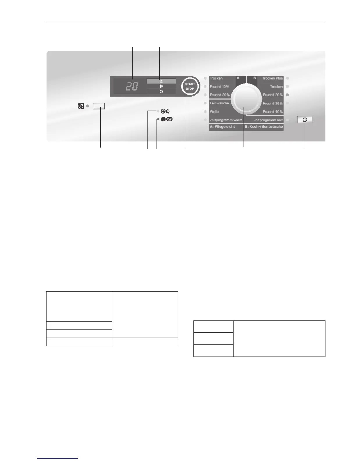 Control panel PT 8253, 8333, 8403, 8503, 8803 Profitronic B Plus Residual moisture programmes