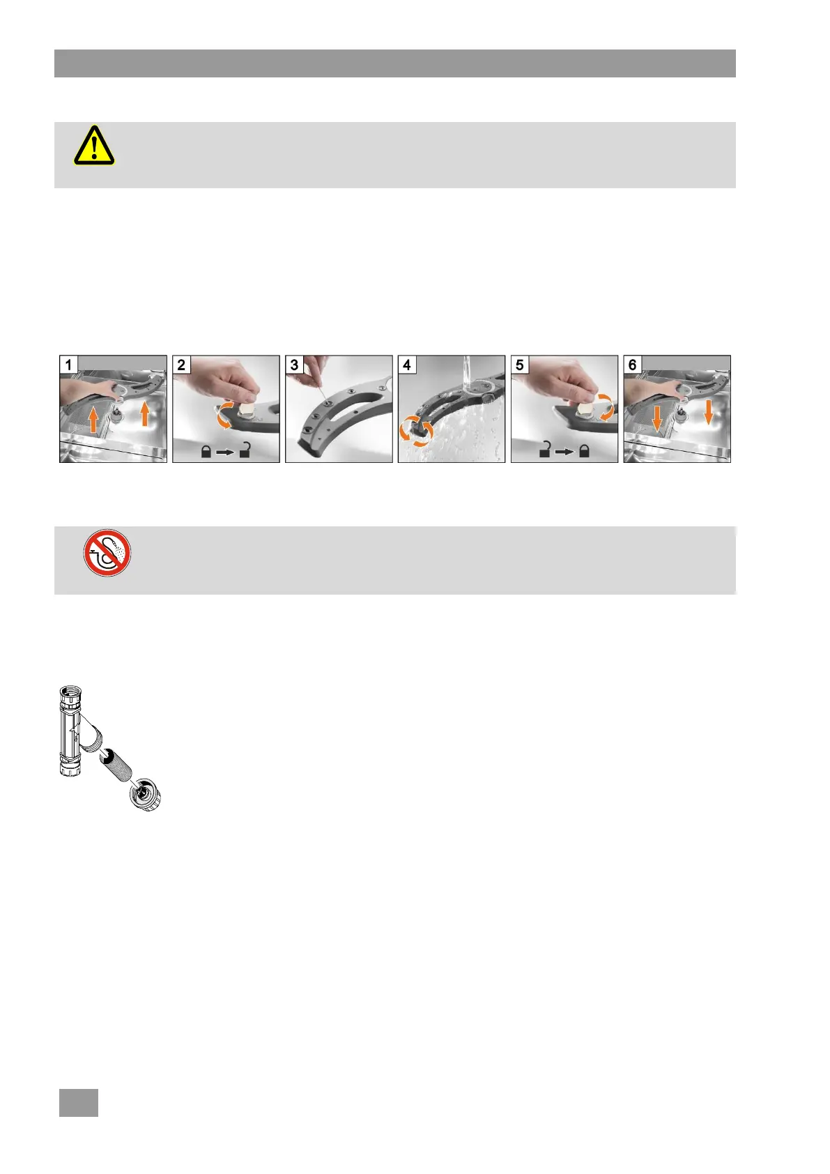 Procéder de façon identique pour le bras de lavage supérieur.