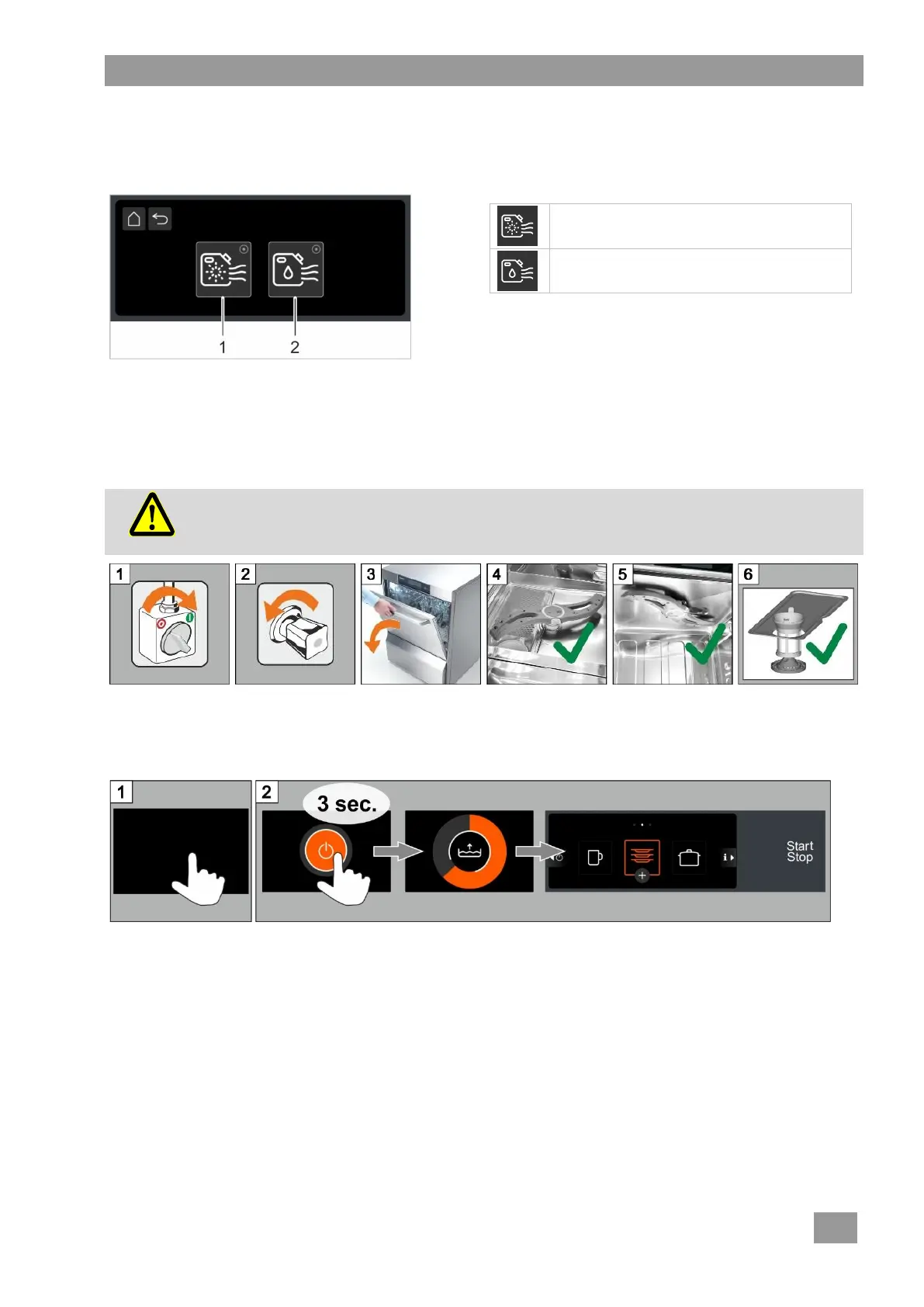 Houd schakelvlak 1 of 2 ingedrukt tot het doseersysteem is ontlucht.