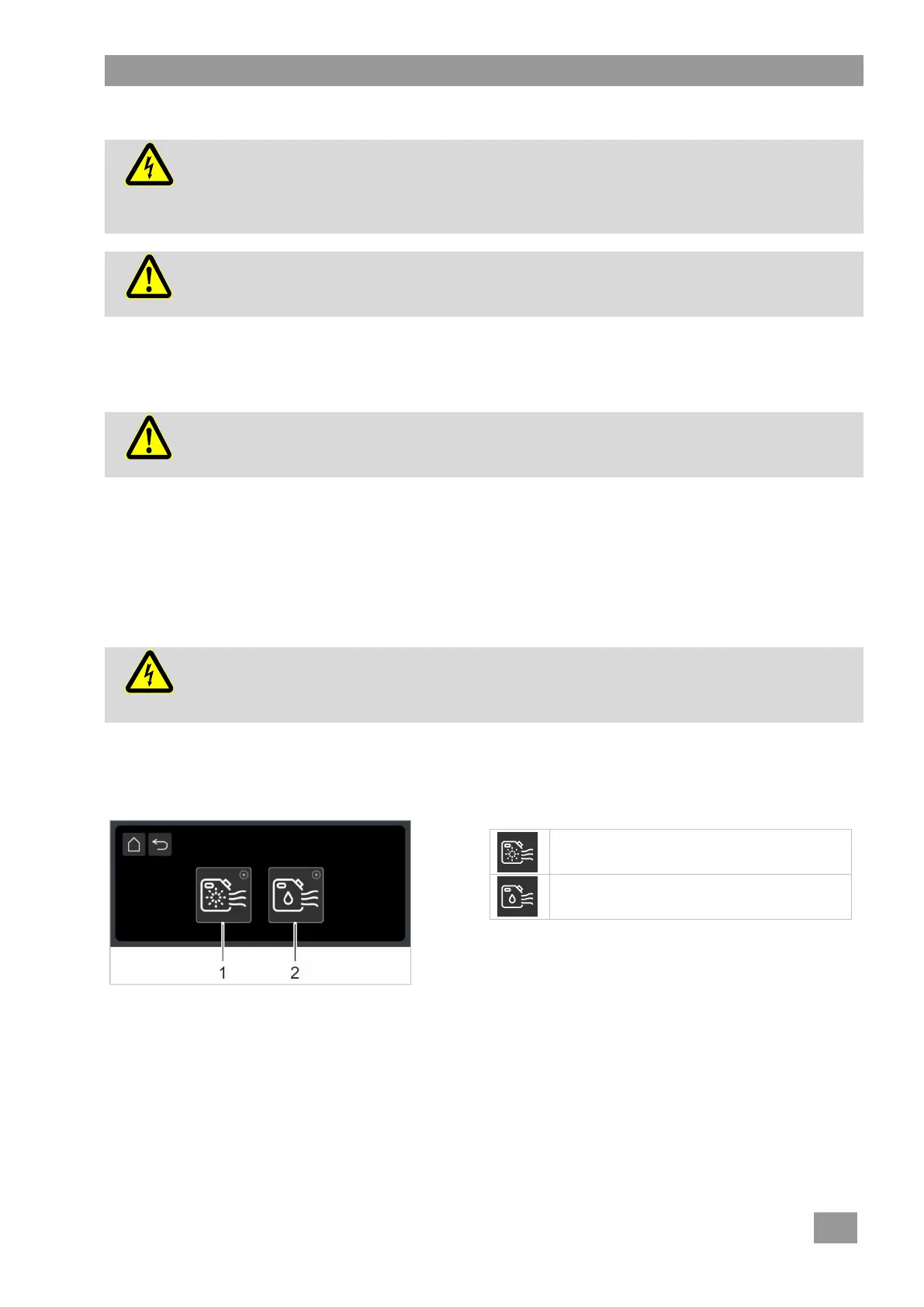 Κρατήστε πιεσμένο το πλήκτρο 1 ή 2, προκειμένου να αντικαταστήσετε το νερό στους σωλήνες δοσομέ-