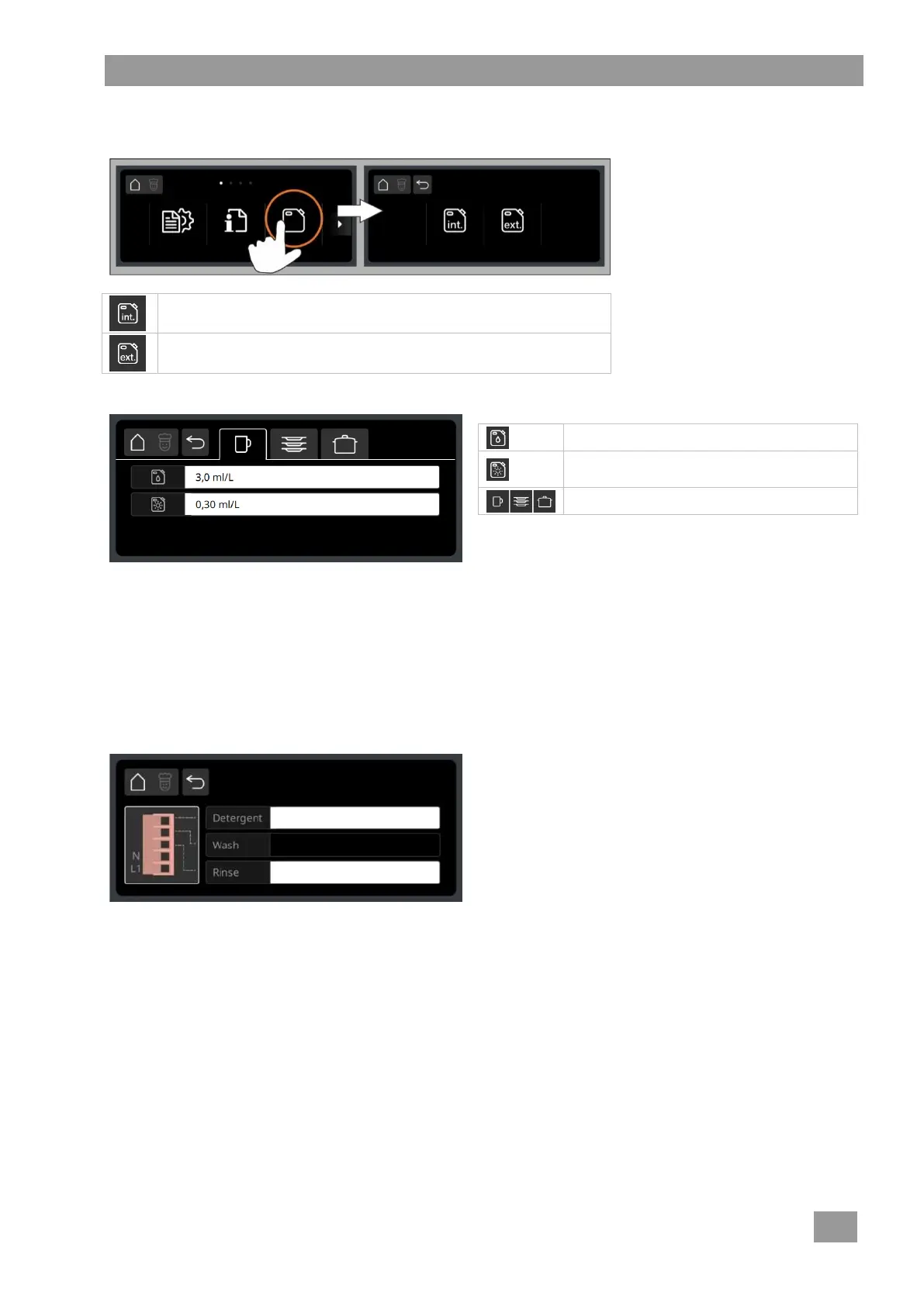 Tato nabídka vyžaduje nastavení servisním technikem, pokud je stroj připojen na externí dávkovač ( 17).