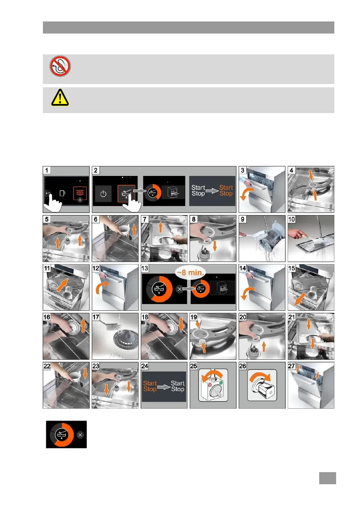 Tragen Sie Schutzkleidung und Schutzhandschuhe, bevor Sie Teile anfassen, die mit Spül-