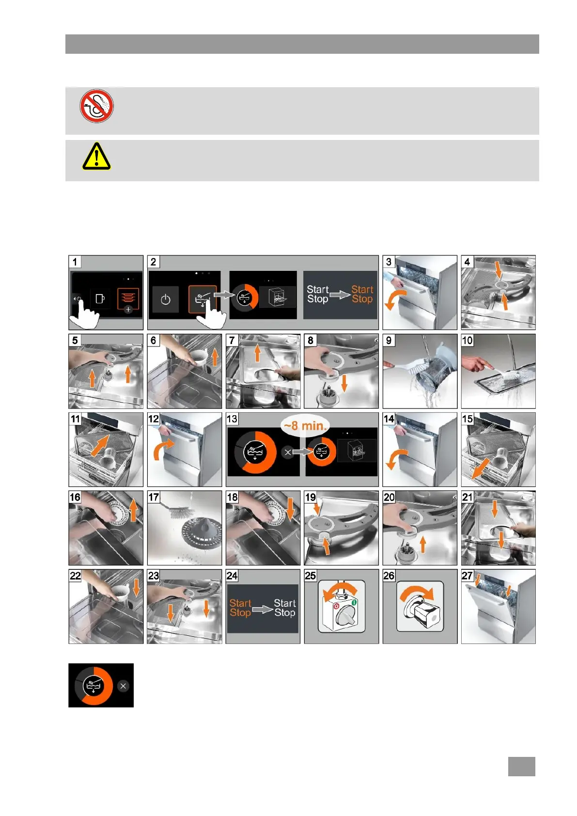După primul pas de program, se va întrerupe programul de autocurățare iar pe display apare o prezentare