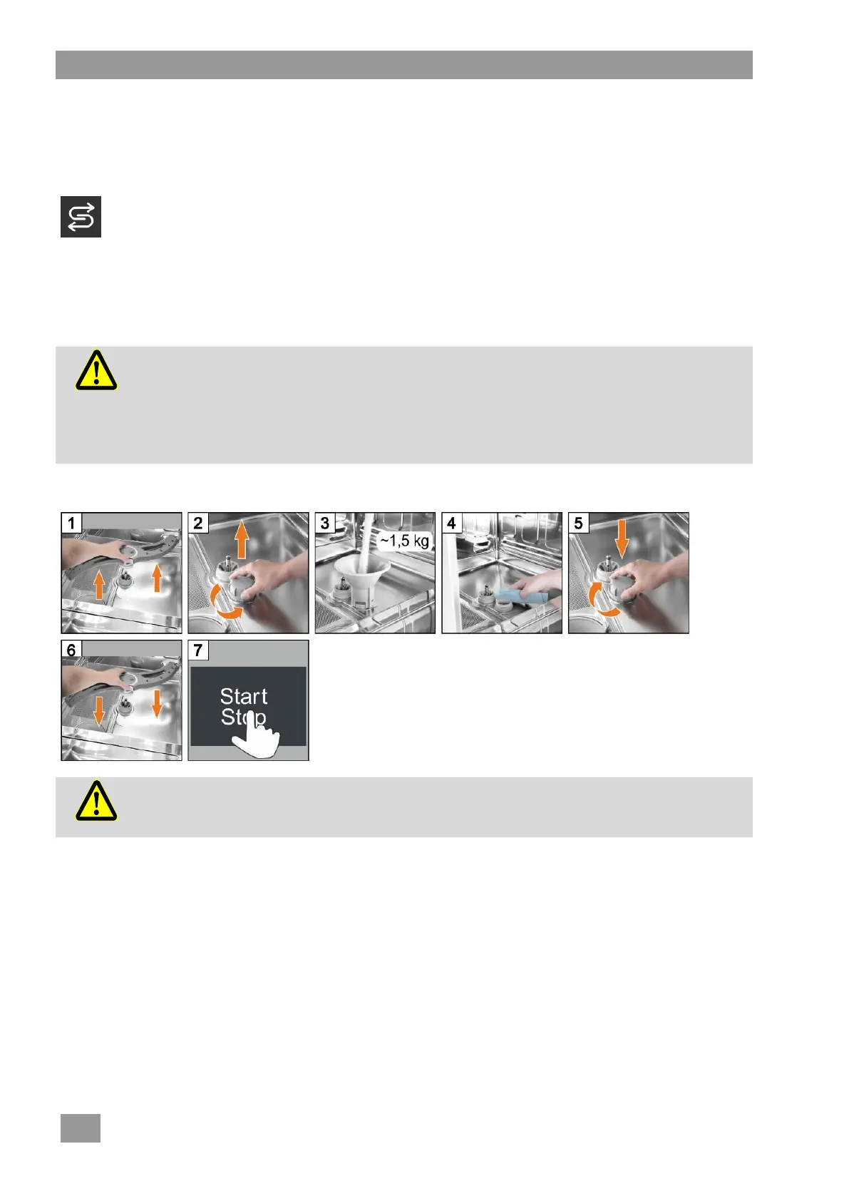 po polnjenju posode za sol, ko so opravljeni približno 3 ciklusi pomivanja in se del dodane soli