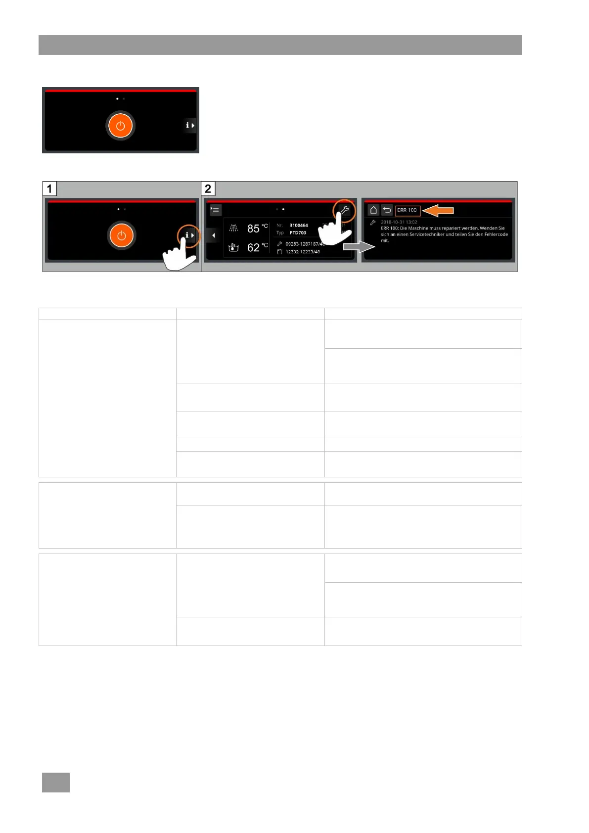 If a serious error is present, washing is no longer possible and a red bar appears at the top of the display: