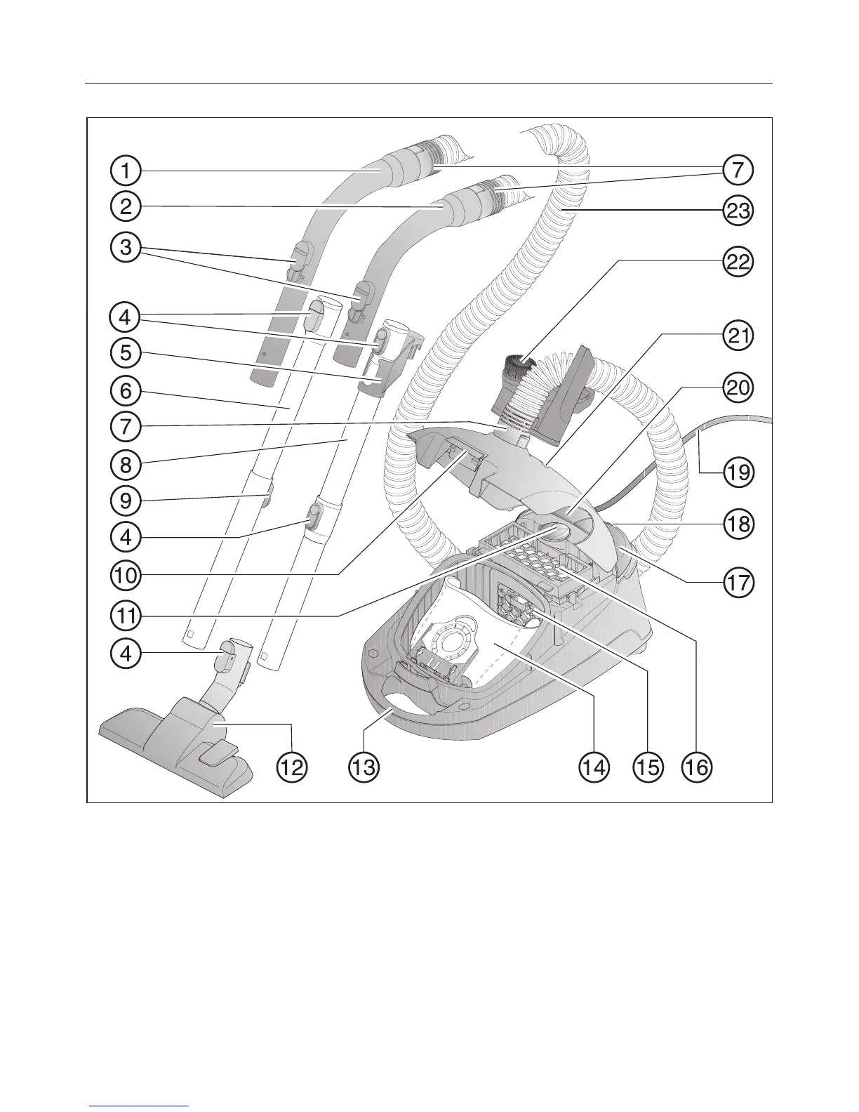 Miele S 2111 - Description of the vacuum cleaner; Vacuum Cleaner Parts Diagram