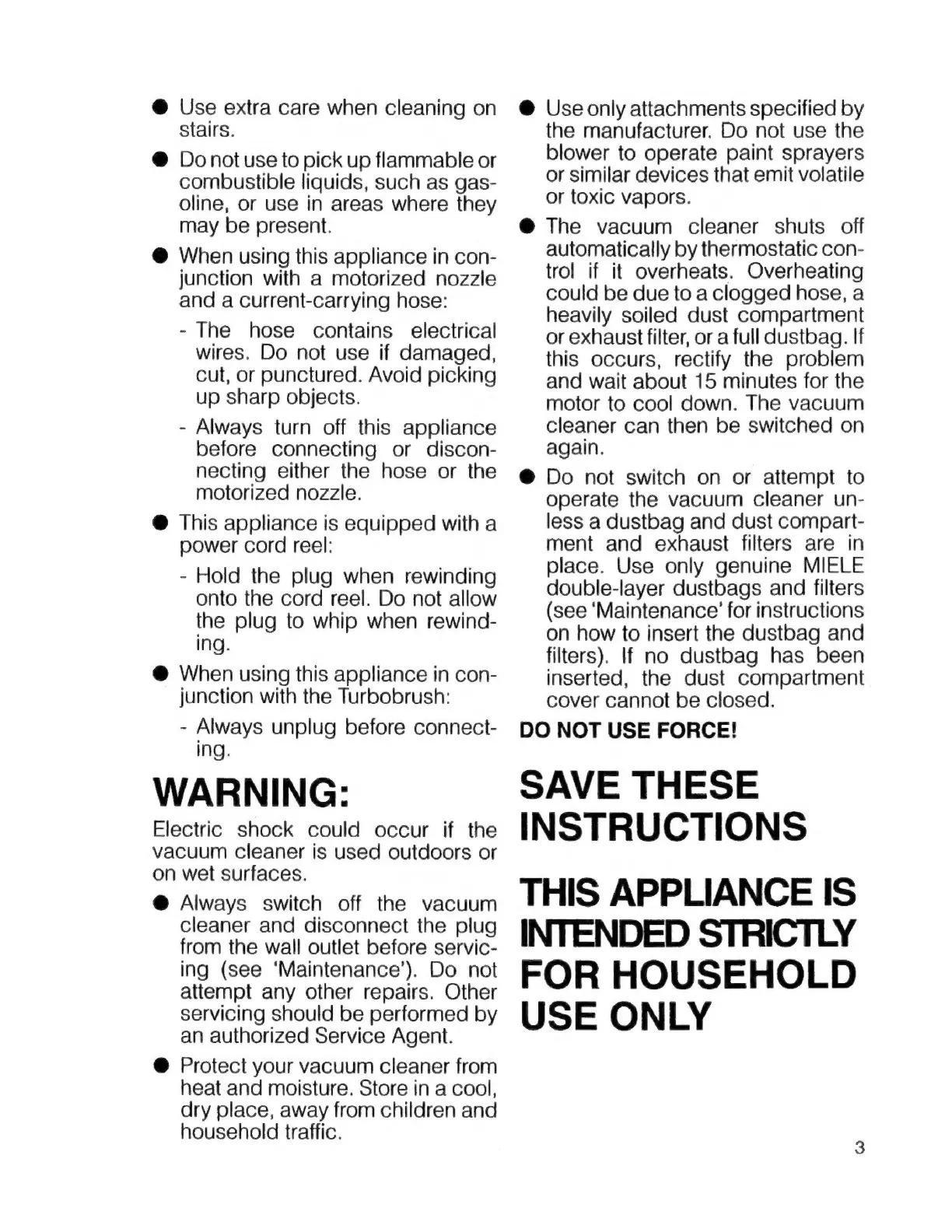 Miele S 280i - Specific Safety Warnings