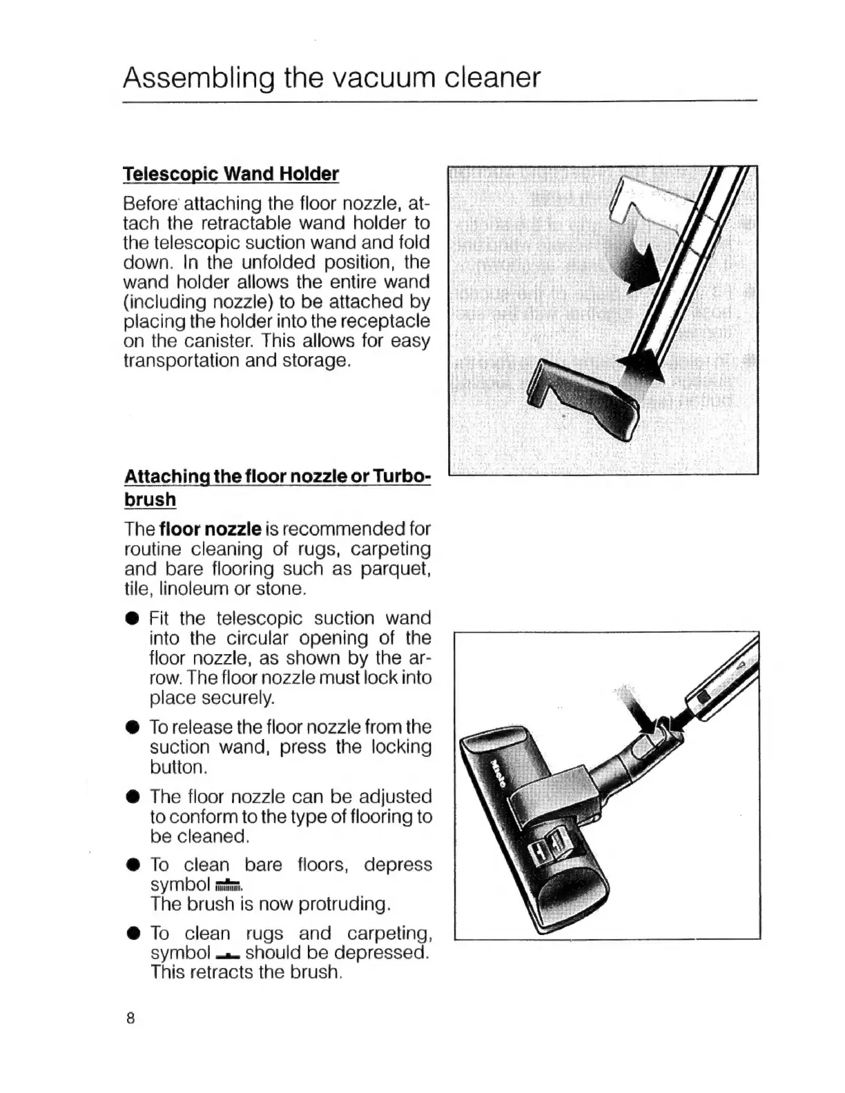 Miele S 280i - Telescopic Wand Holder and Adjustments; Floor Nozzle Adjustments