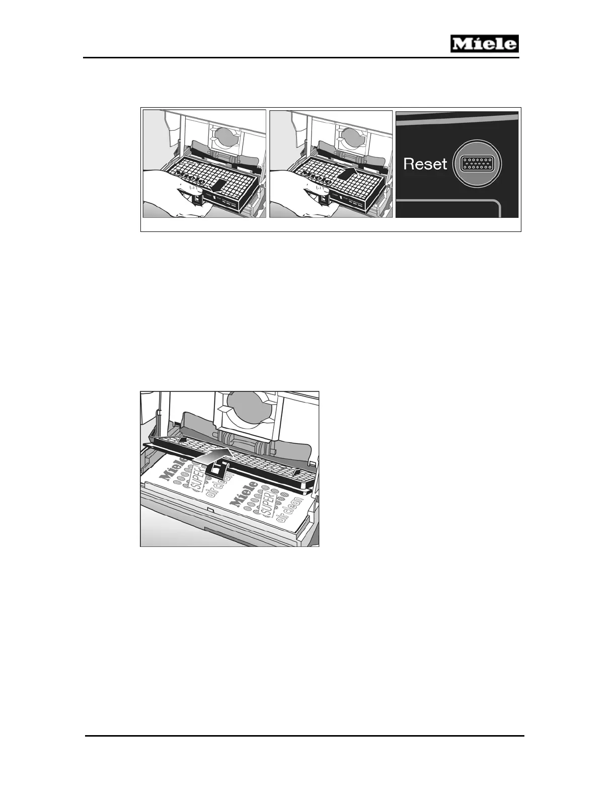 Replace the dust compartment filter every time a new box of dustbags is